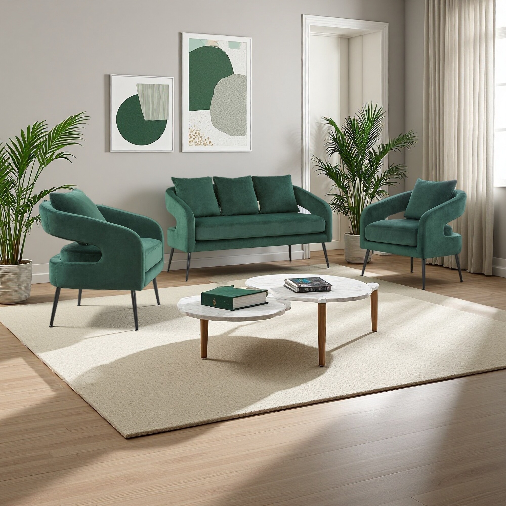 Nervo 3-Piece Velvet Sofa Set Accent Armchairs with Brushed Gold Stainless Steel Base Couch for Living Room and Office