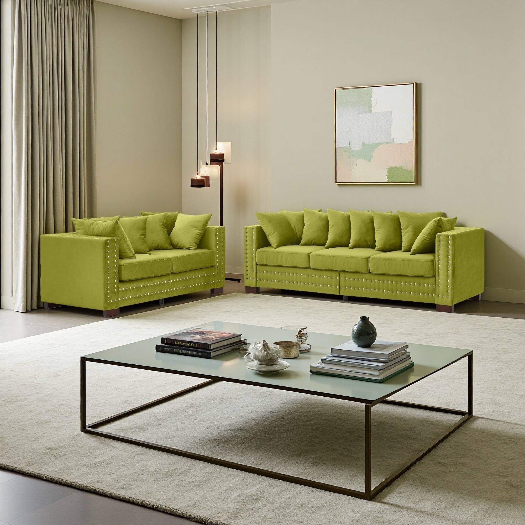 Velvet Square Arm 5-Seater Sofa Set with Silver Nail Decor and Built-in Storage