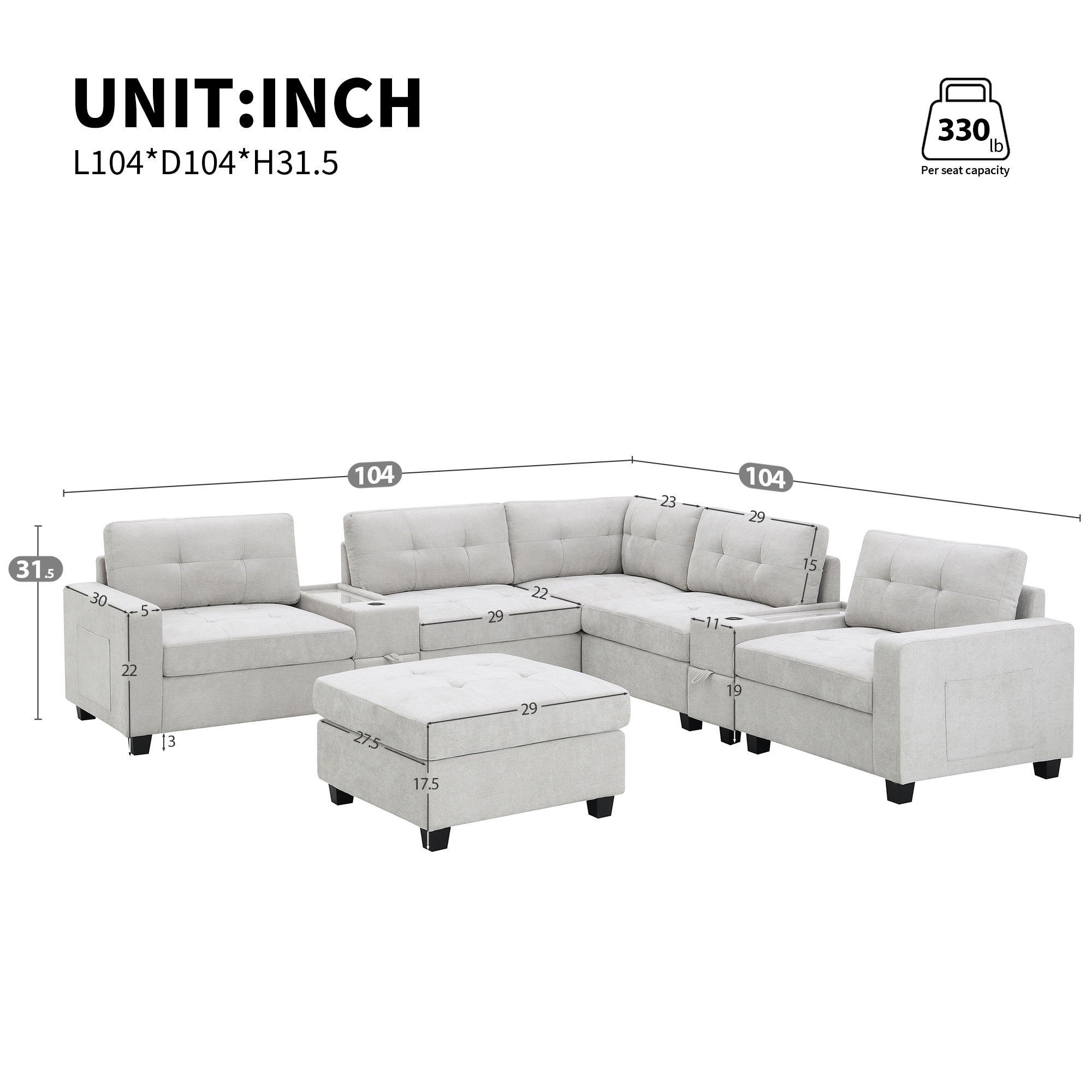 115.5-Inch Modular Sectional Sofa With Durable Polyester Upholstery, Plush Cushions And Hidden Storage Compartments