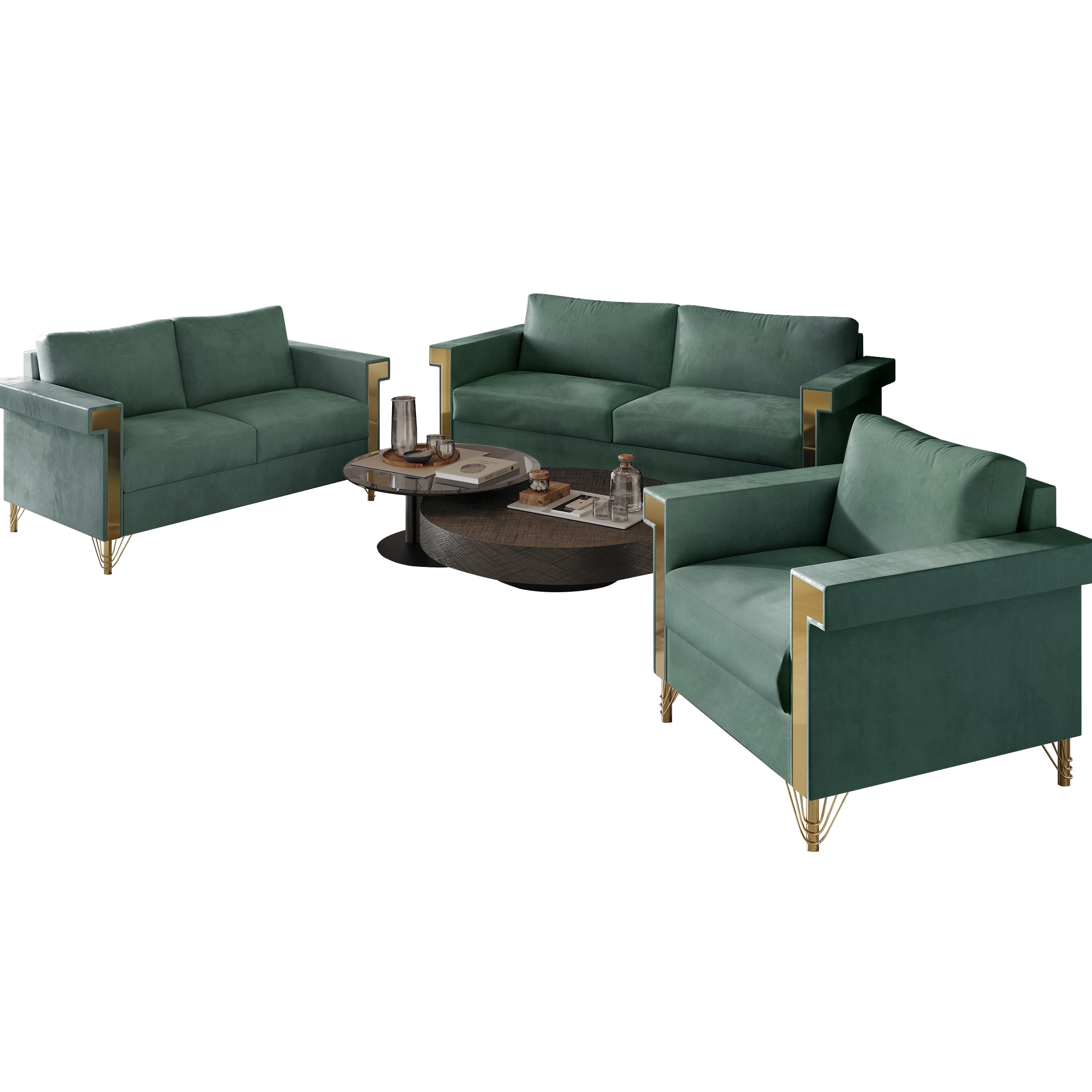 CraftPorch Luxurious Velvet Upholstered 3-Piece Living Room Set