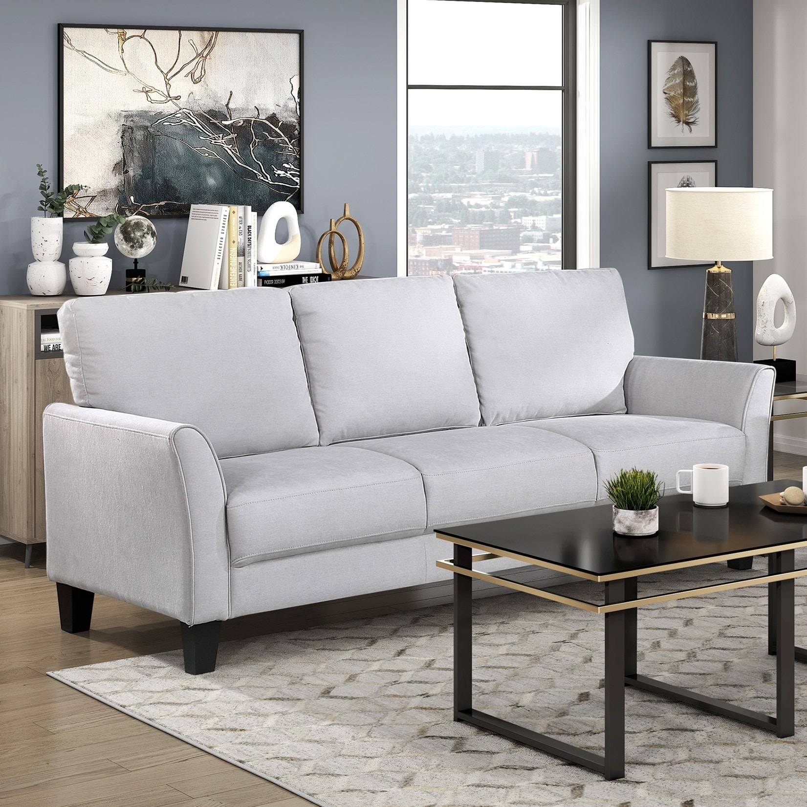 Linen Sofa and 2 Chairs with 2 Throw Pillows