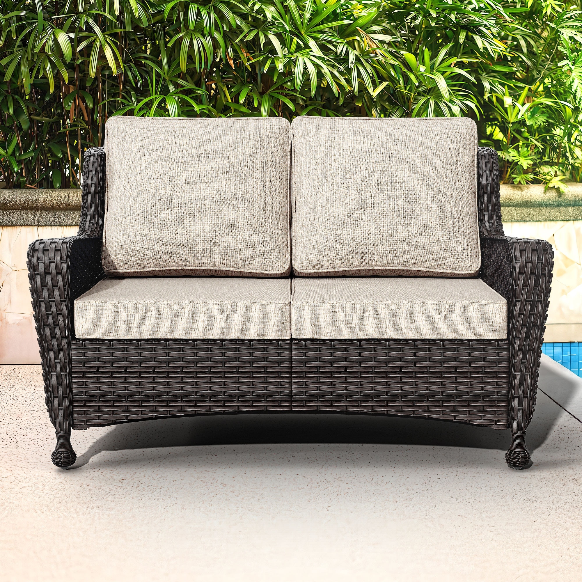 COZYWOR Outdoor Patio Rattan Loveseat With Cushions