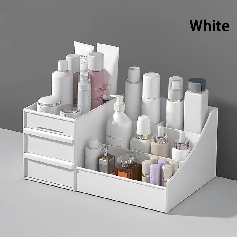 High Capacity Makeup Organizer: Cosmetic & Jewelry Storage Box For Bathroom & Home Garden WHITE