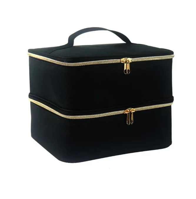 Double Layer Nail Polish Storage Bag With 30 Compartments, Portable Essential Oil Organizer Cosmetic Nail Care Kit Box small Black
