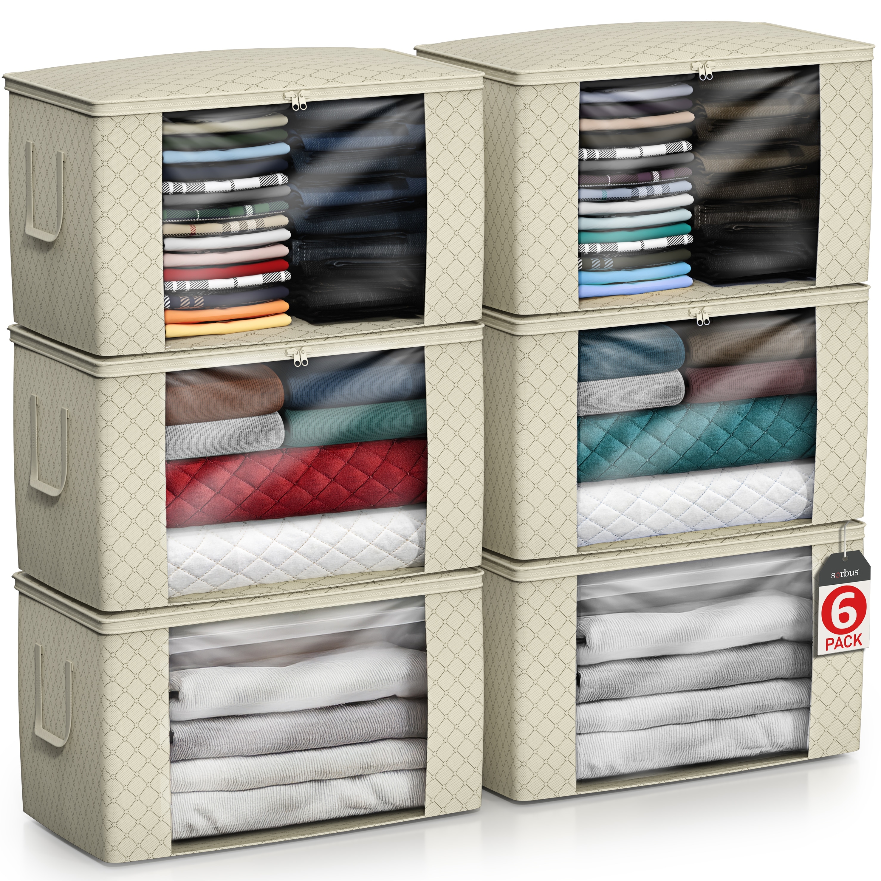 Sorbus Foldable Storage Bag Organizers, Large Clear Window & Carry Handles, Great for Clothes, Blankets, and More