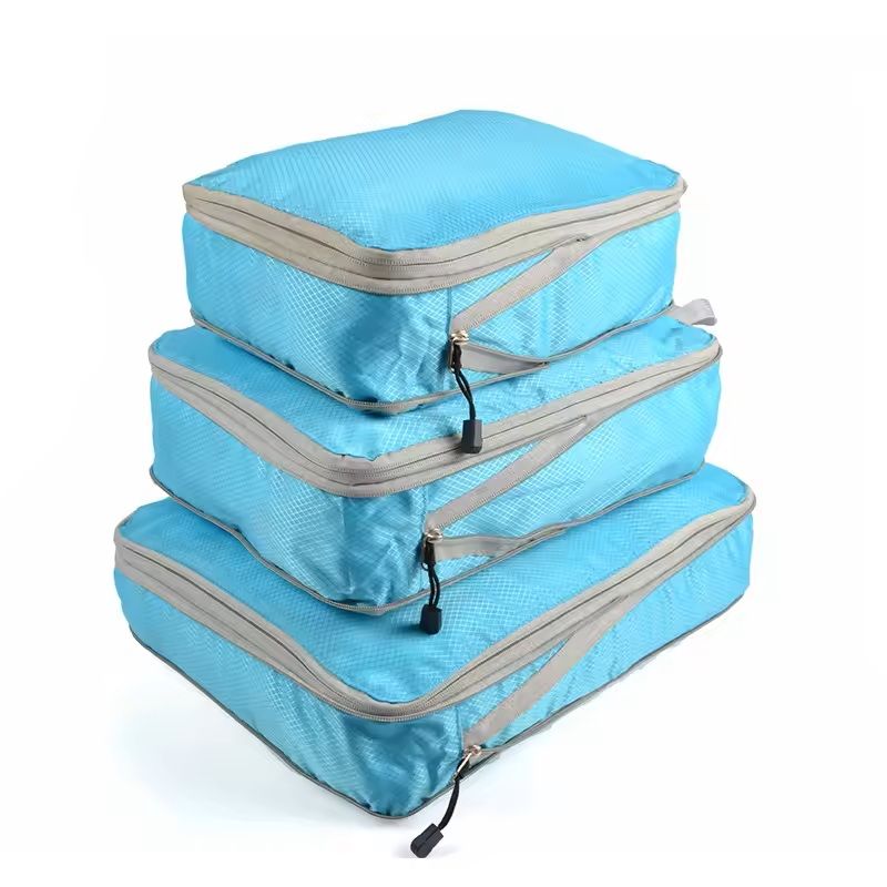 Compressible Travel Packing Cubes Foldable Waterproof Luggage Organizer small (12 X 8 In) sky Blue
