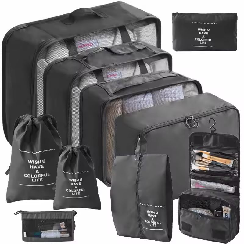 Travel Luggage Organizer Set Packing Cubes And Storage Bags black 10pc