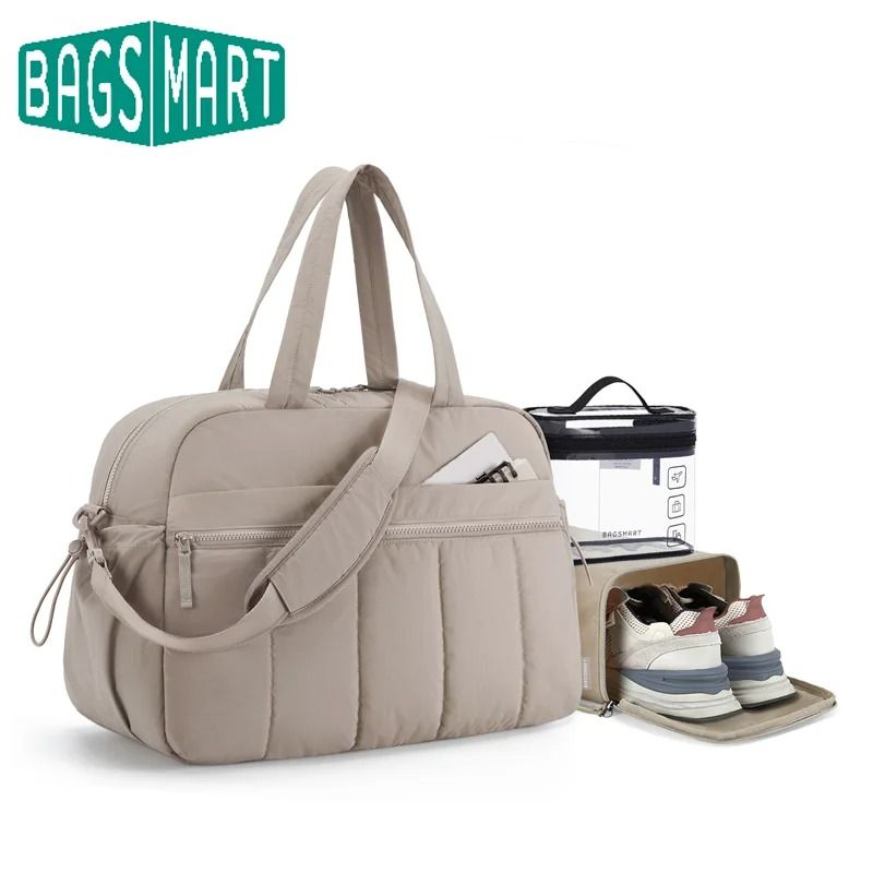 Travel Duffel Bag For Women, Gym & Weekend Carry on With Wet Pocket, Waterproof & TSA Friendly khaki