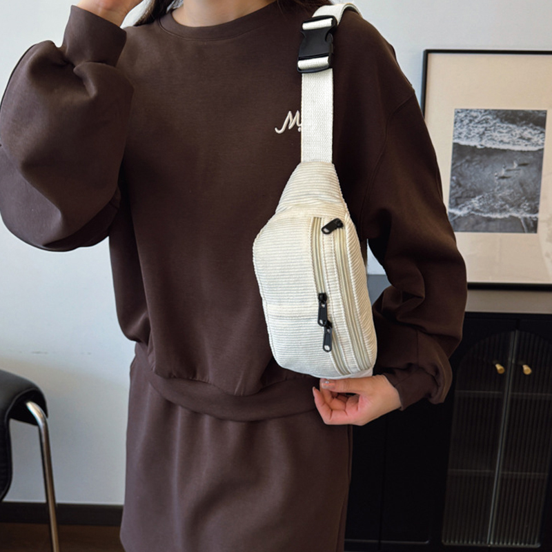 Trendy Multi Color Corduroy Waist Bag Casual Multi Pocket Design For Daily Use & Travel khaki