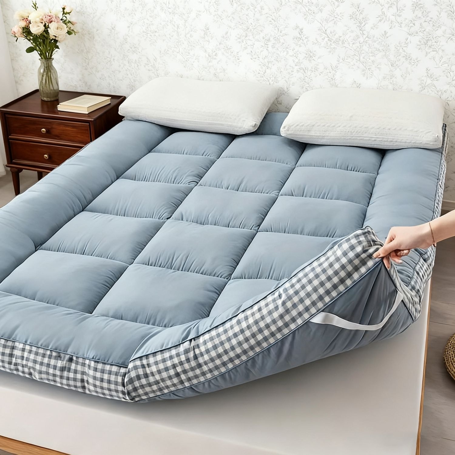Shatex Sponge Layer Cotton-Soybean Mattress Topper Grid-Trimmed Mattress Pad