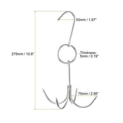 Double Meat Hooks, Stainless Steel Smoker Hook Tools, Pack of 6 - Silver Tone