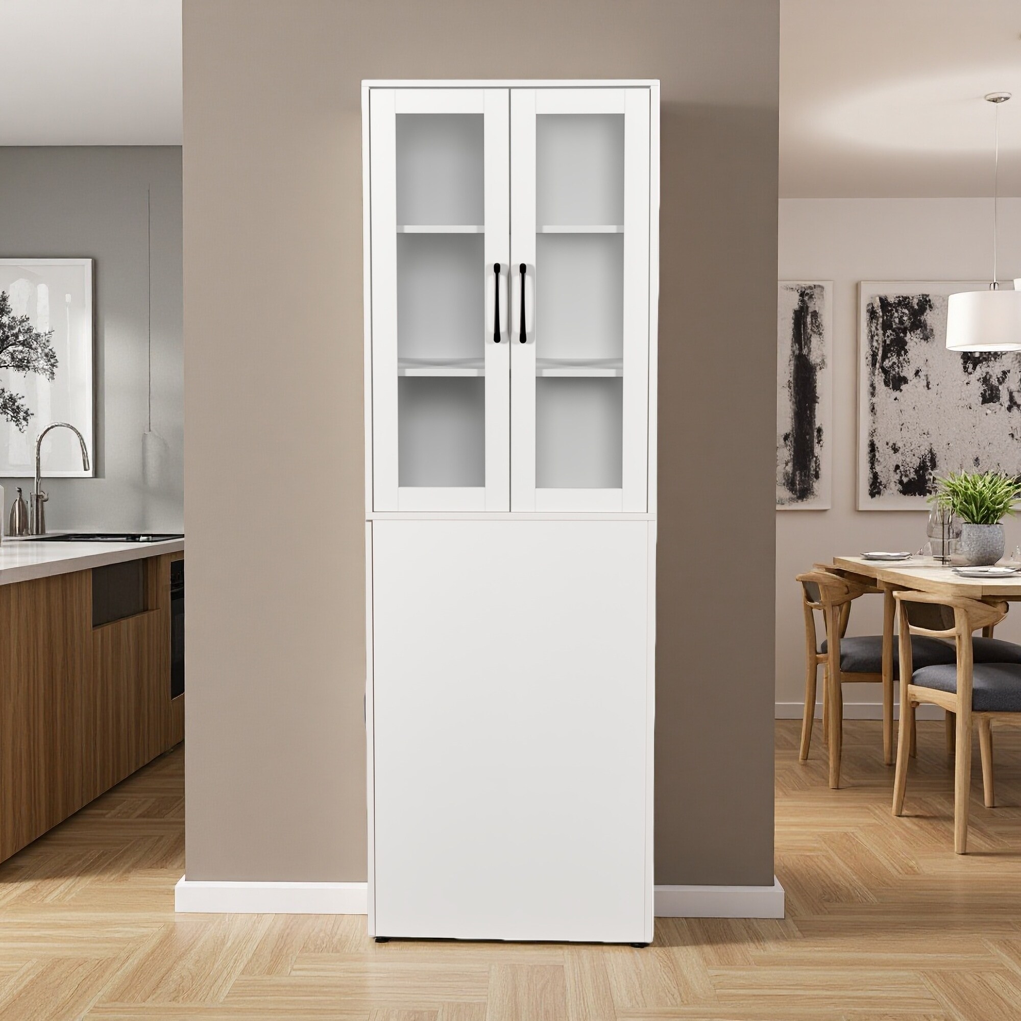 70.87"H Wooden Display Cabinet, 4-Tier Pull-Out Shelf, 2 Glass Doors, Kitchen & Living