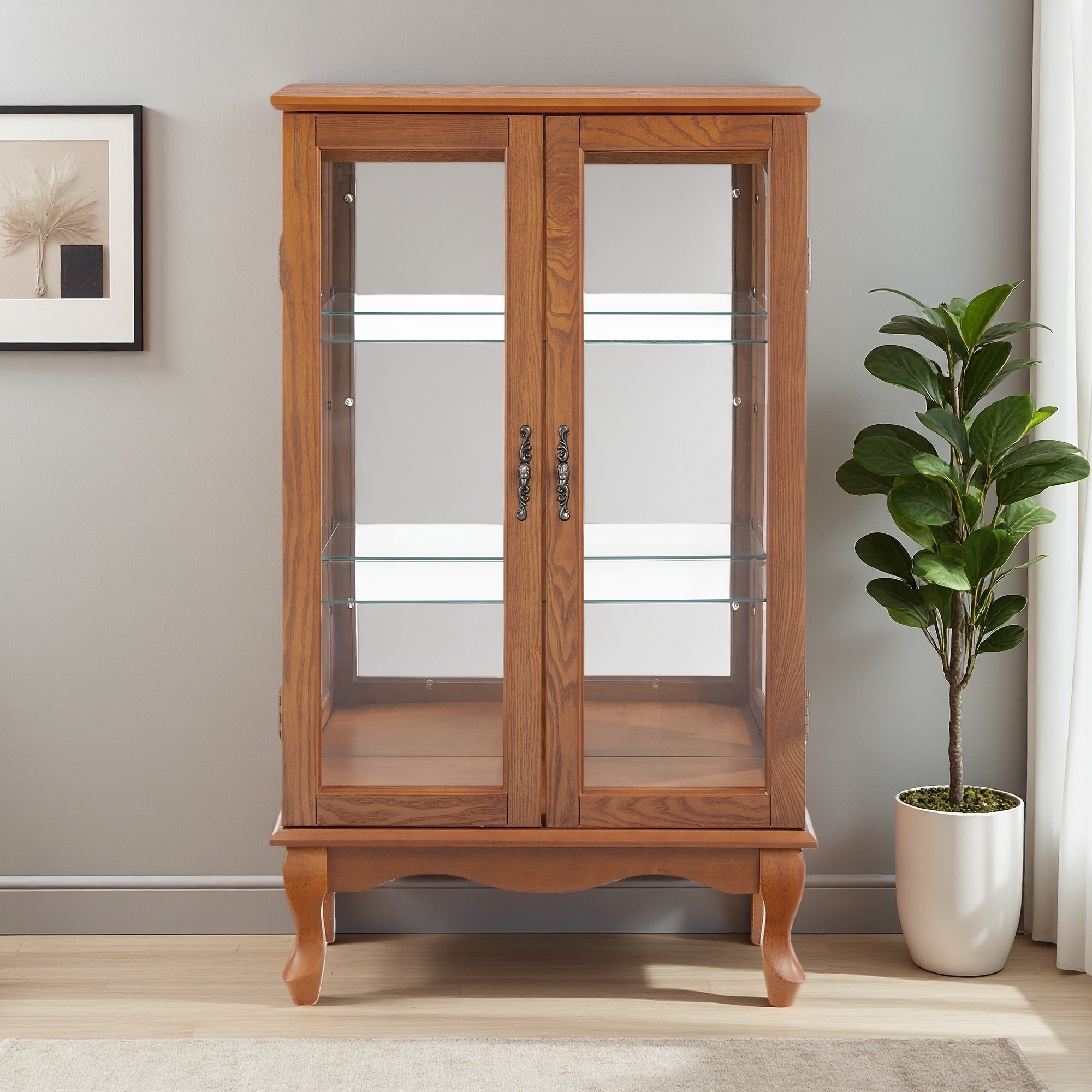 43.39"H 2-Door Display Curio Cabinet, Tempered Glass, Adjustable Shelves, Lighted
