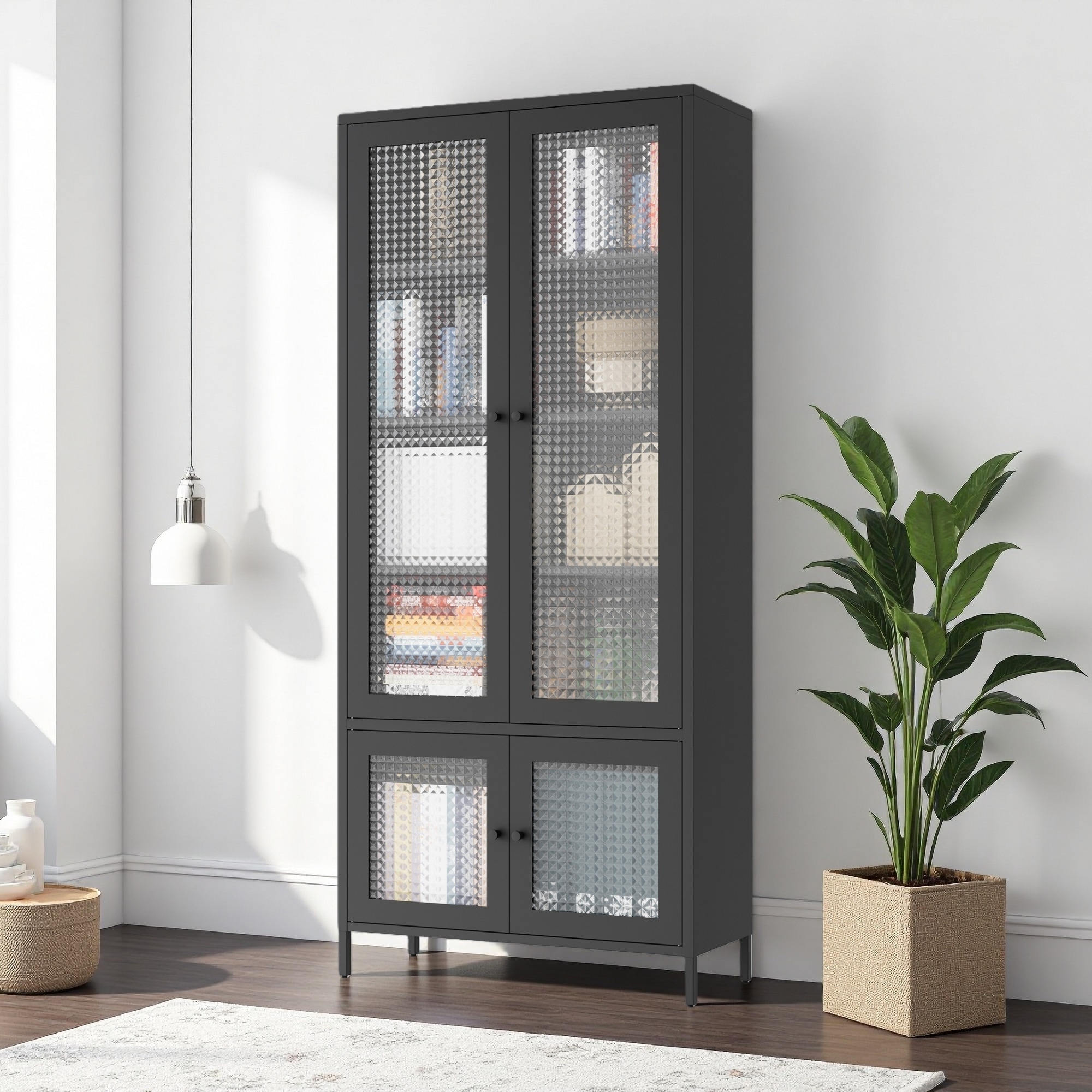 71"H Large Metal Storage Cabinet, 4 Glass Doors, 5-Shelf Freestanding Bookcase