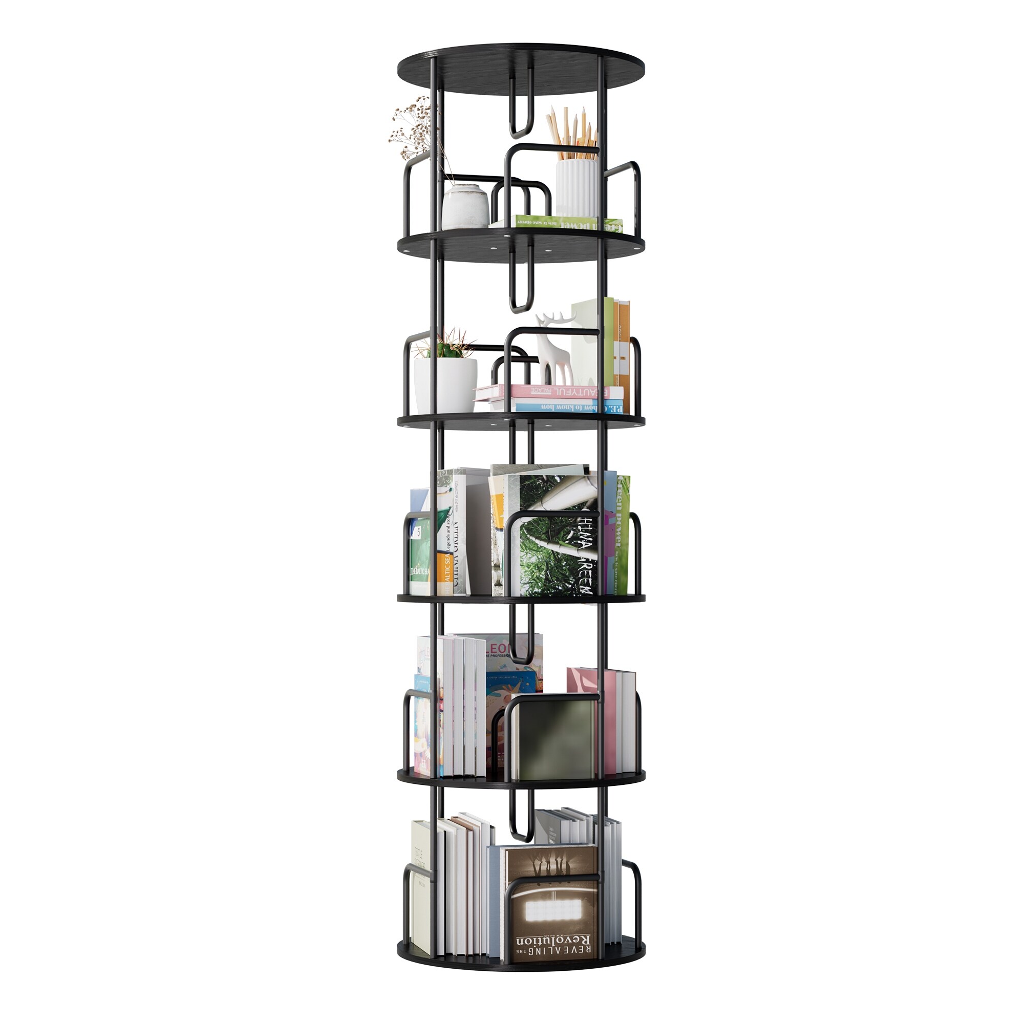 5-Tier Rotating Bookshelf Tower, 360° Revolving Round Bookcase, Narrow Tall Storage Shelf for Bedroom/Living Room