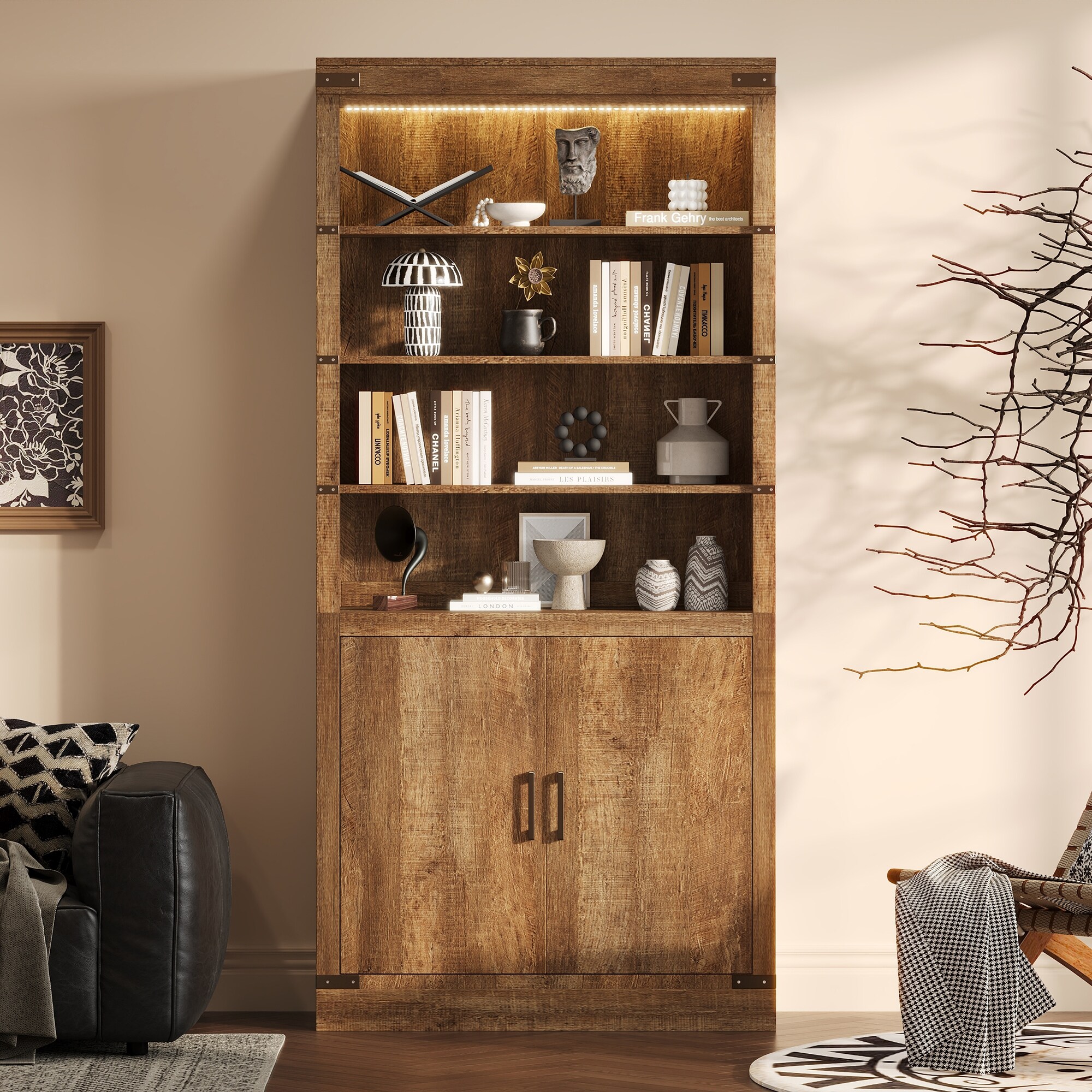83.4" Tall Bookshelf with LED Lighting for Living Room, Home Office