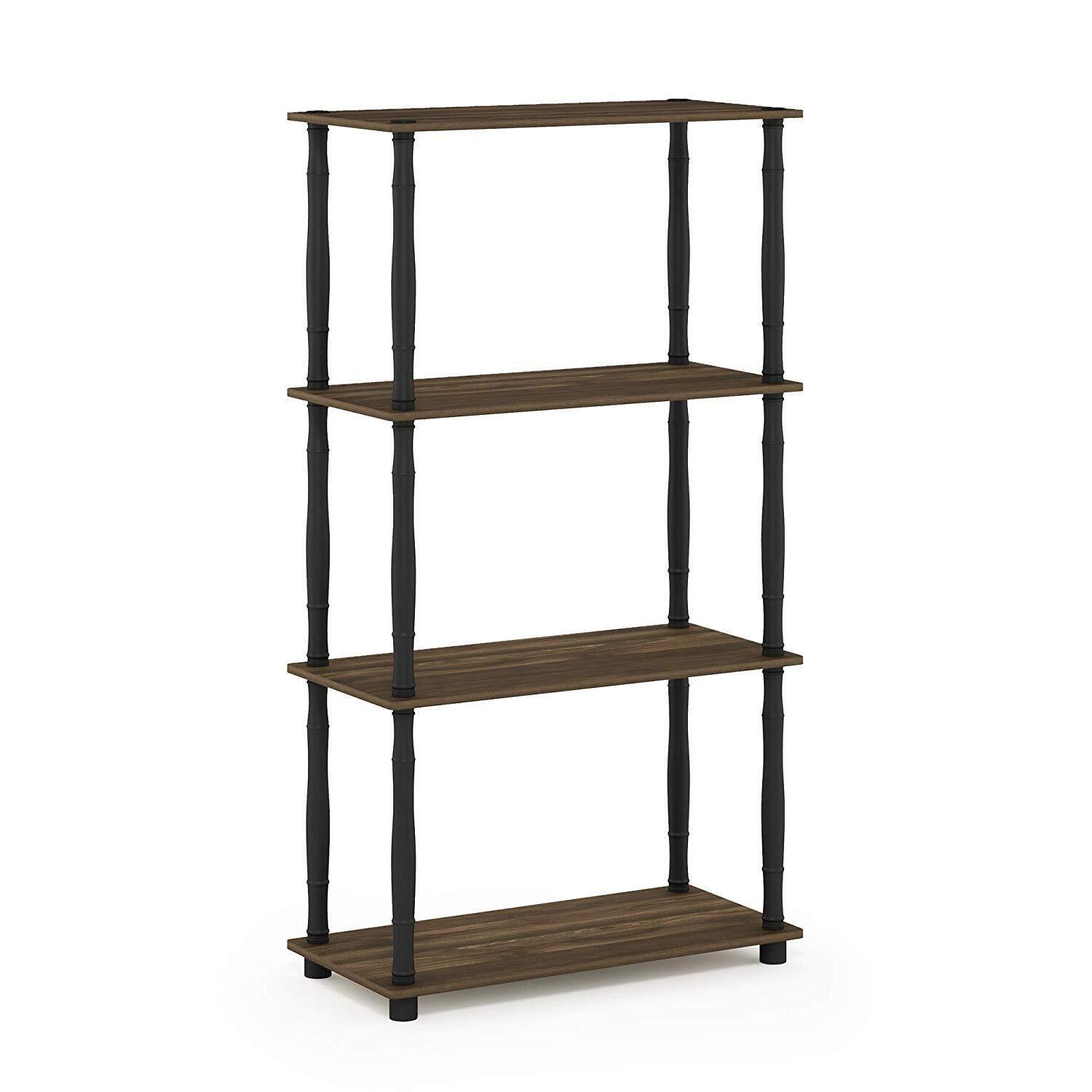 4 Tiers Wood Household Shelving Unit in Walnut/Black (23.6 in. W x 43.25 in. H x 11.6 in. D) - 23.6