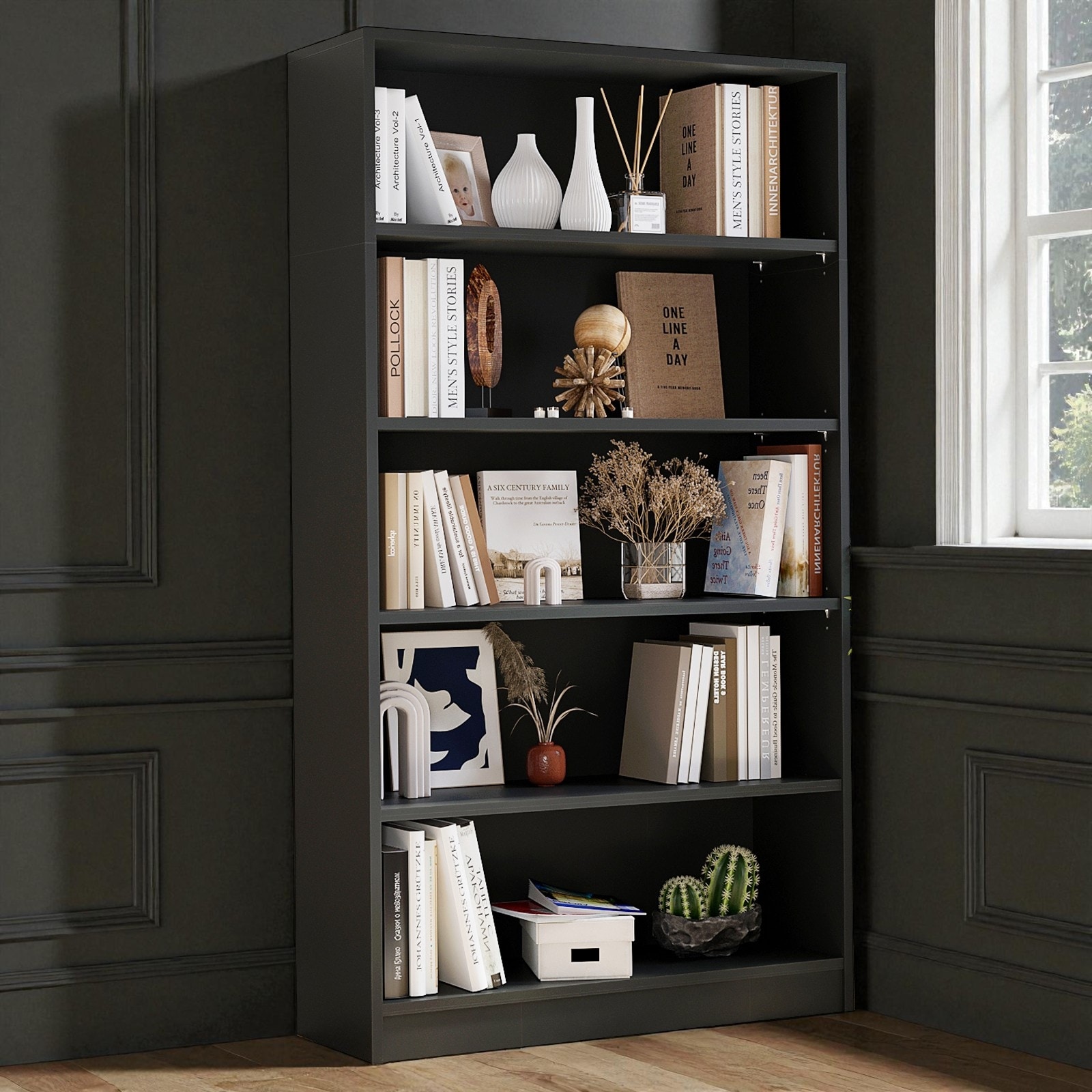 5 Tier Bookcase Home Office Open Bookshelf, Vintage Industrial Style Shelf with Metal Frame, MDF Board
