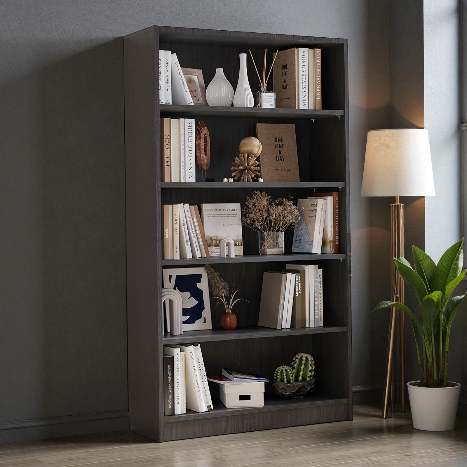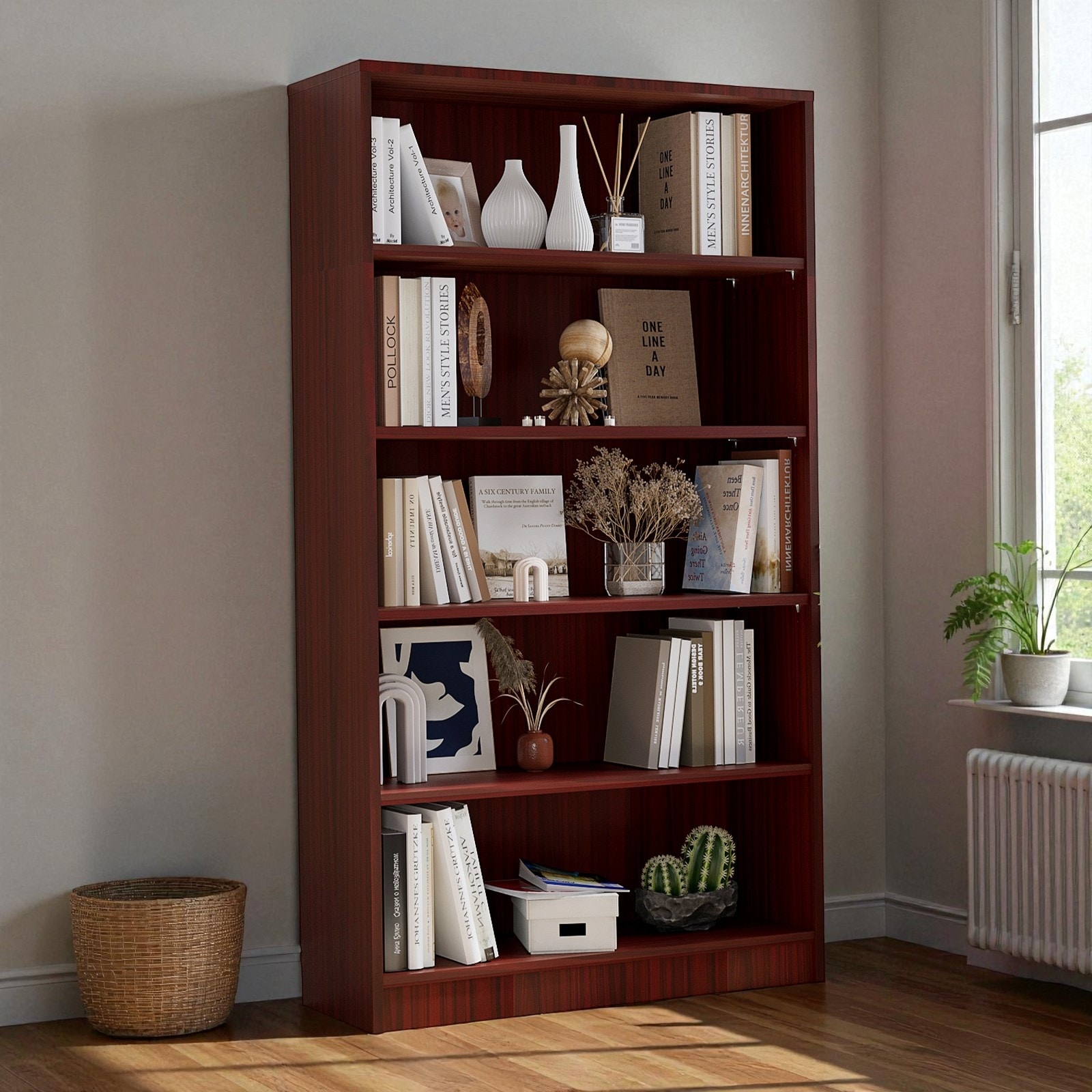 60" Tall 5-Shelf Wooden Bookcase with Adjustable Shelves, Freestanding Storage Bookshelf for Bedroom, Living Room, or Office.