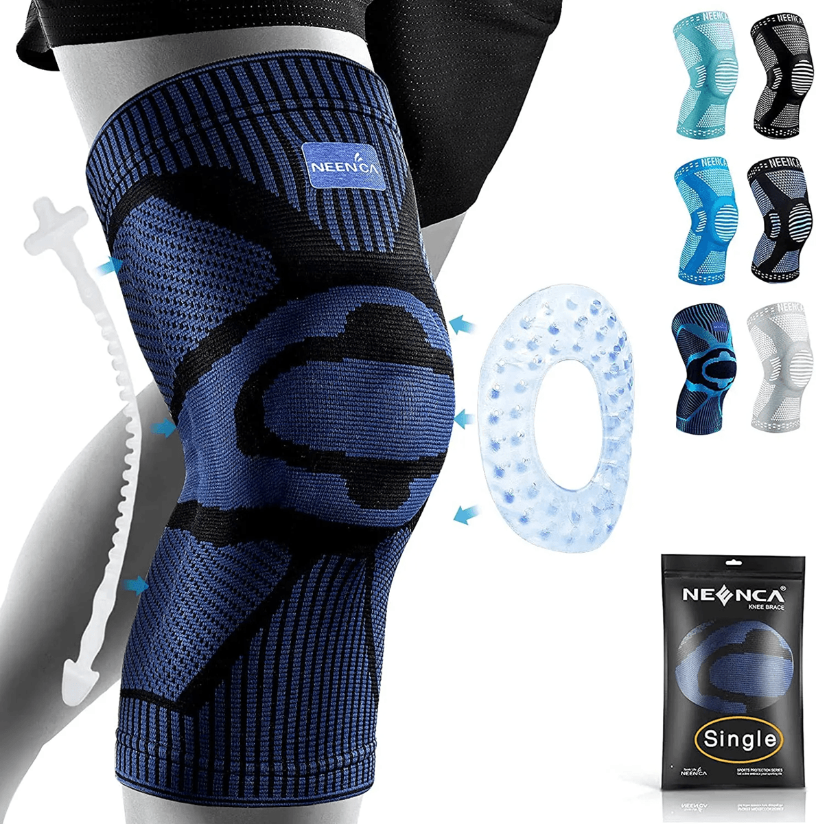 NEENCA Pro Knee Support Brace With Patella Gel And Side Stabilizers l black Blue
