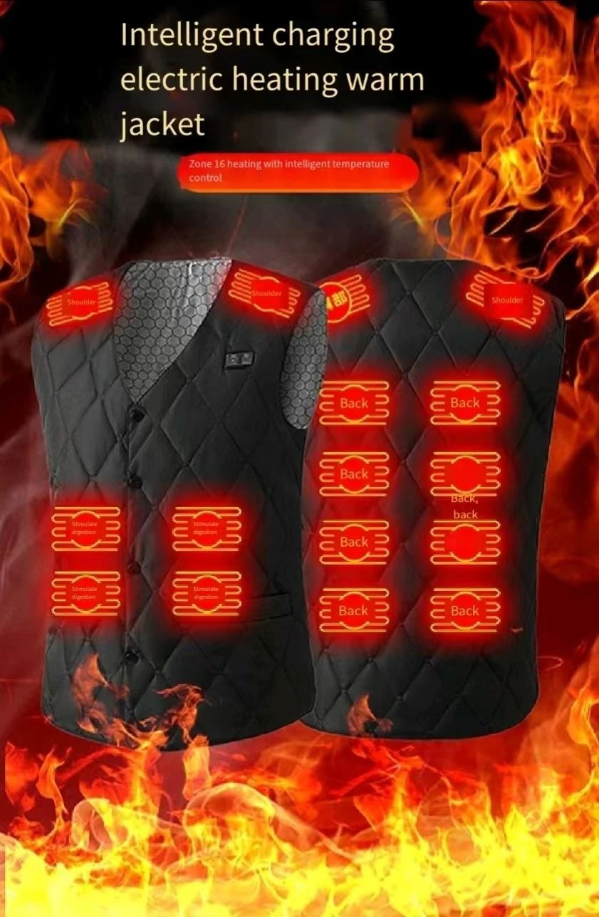 Dual Control Sixteen Zone USB DC Electric Heating Vest For Men Winter Warm Thermal Vest m black