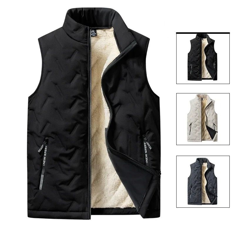Mens Cotton Padded Vest Jacket With Stand Collar black 3xl