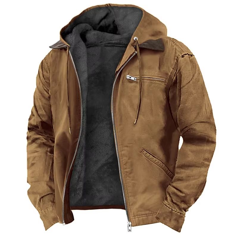 Men's Autumn Winter Fleece lined Zipper Hooded Casual Jacket camel xxxl(us 46 48)