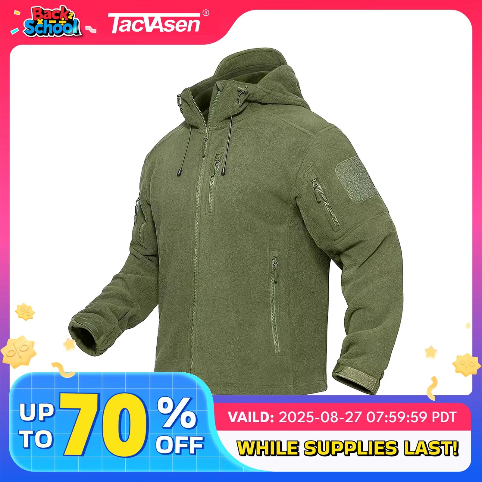 TACVASEN Men's Fleece Jacket With Hood Full Zip Outdoor Windproof Warm Work Coat For Spring And Winter black cn M (us S)