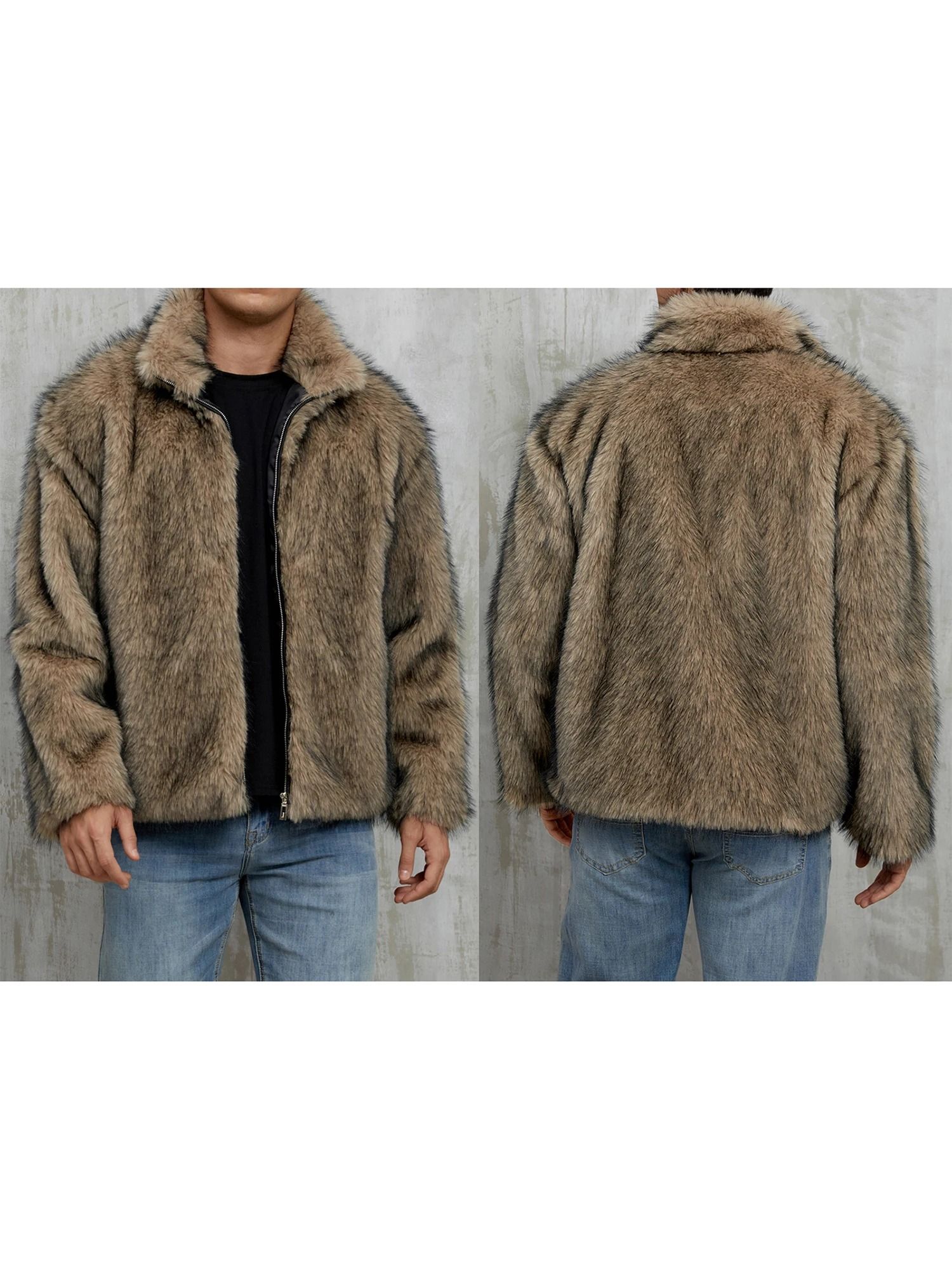 Mens Faux Fur Winter Jacket With Stand Collar And Zip Up Closure grey l