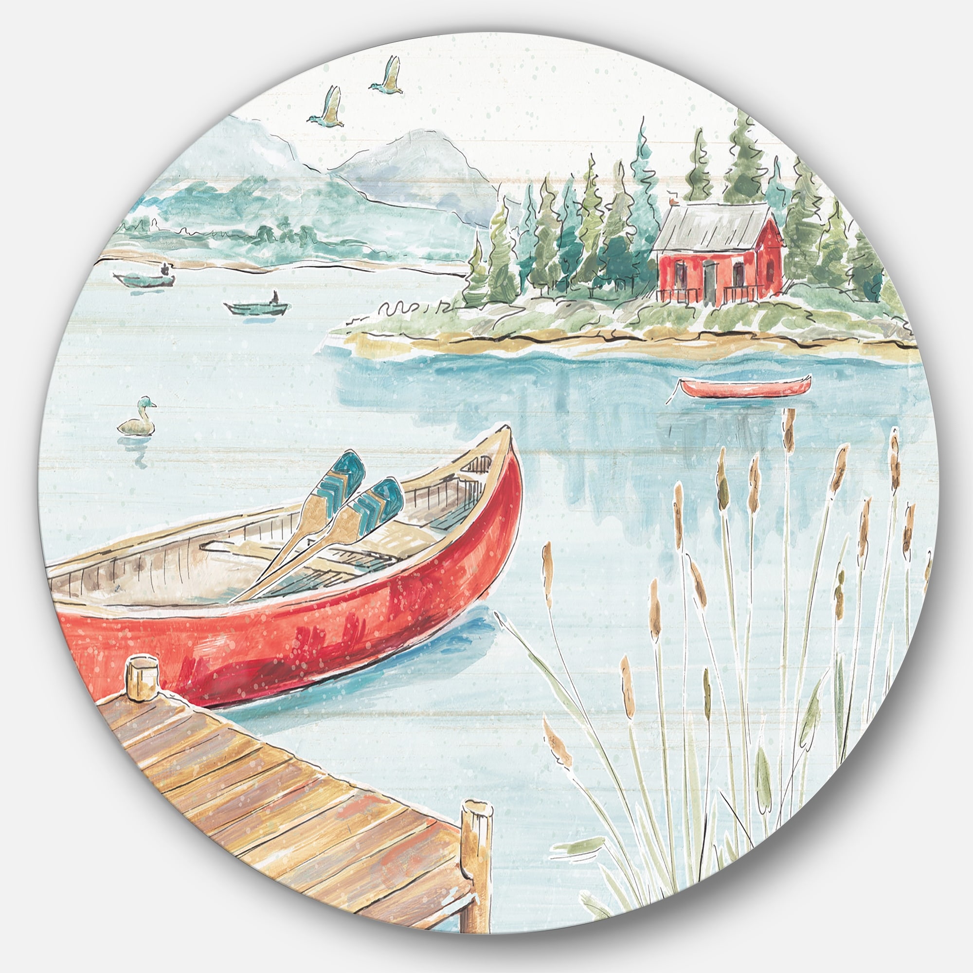Designart 'Lake House Canoes I' Farmhouse Metal Circle Wall Art