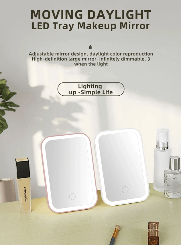 LED Touch Screen Makeup Mirror With Folding Design And USB Rechargeable Light 2pcs pink