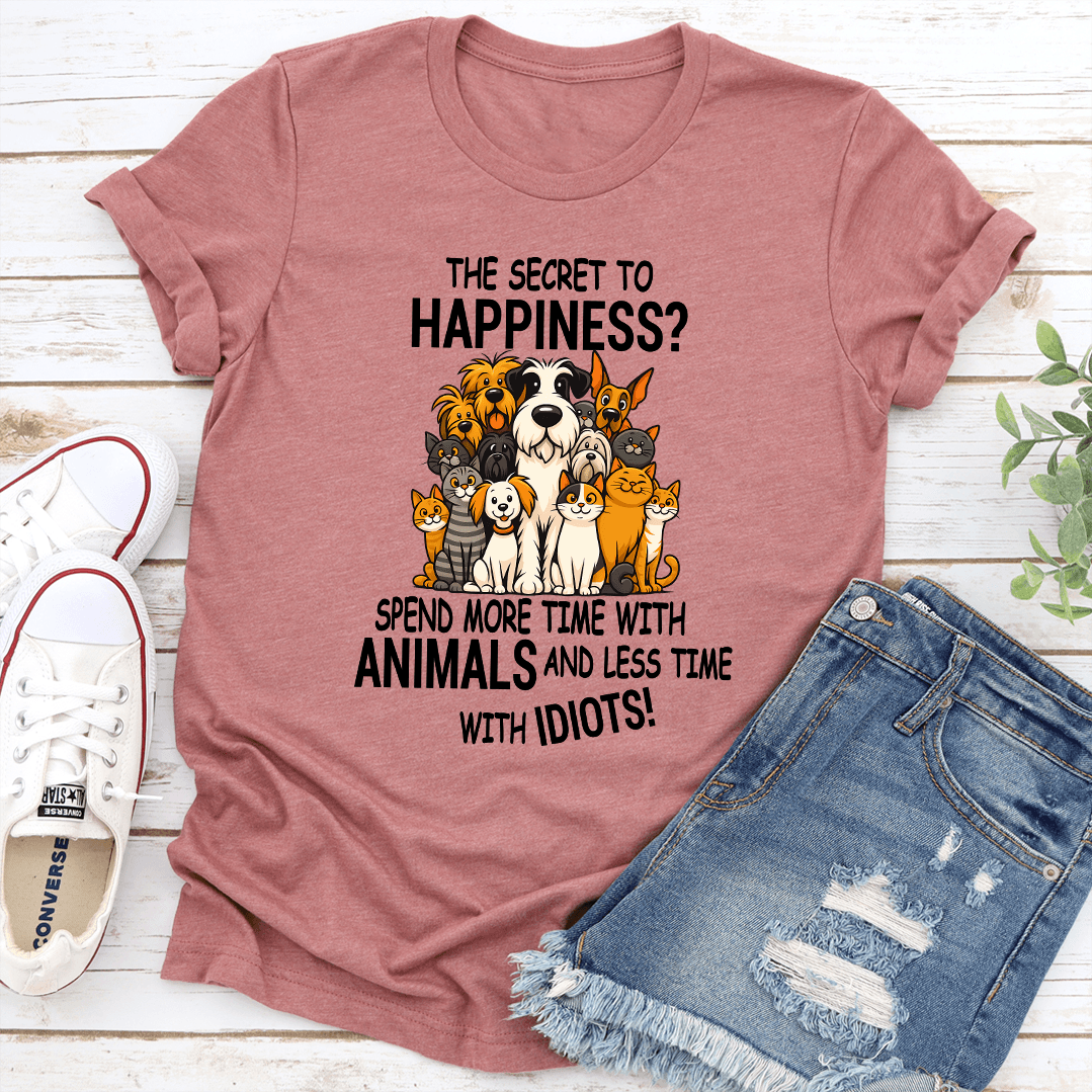 The Secret To Happiness Spend More Time With Animals And Less Time With Idiots Tee S Mauve