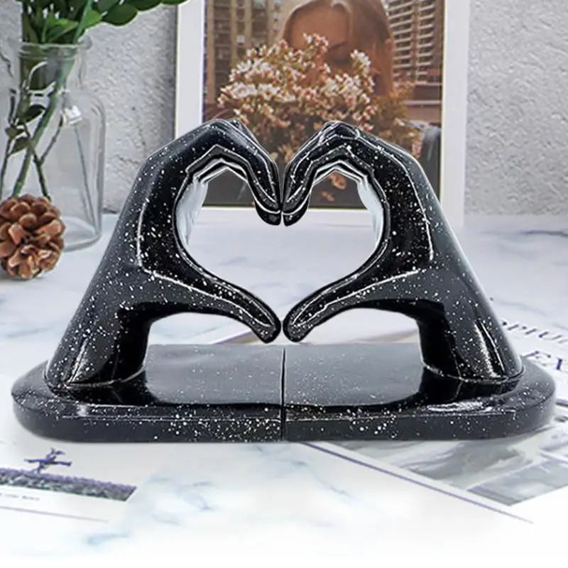 Decorative Heart Shaped Finger Statue Bookends, Elegant Resin Bookends For Shelves, Perfect For Bookshelves Or Gifting black
