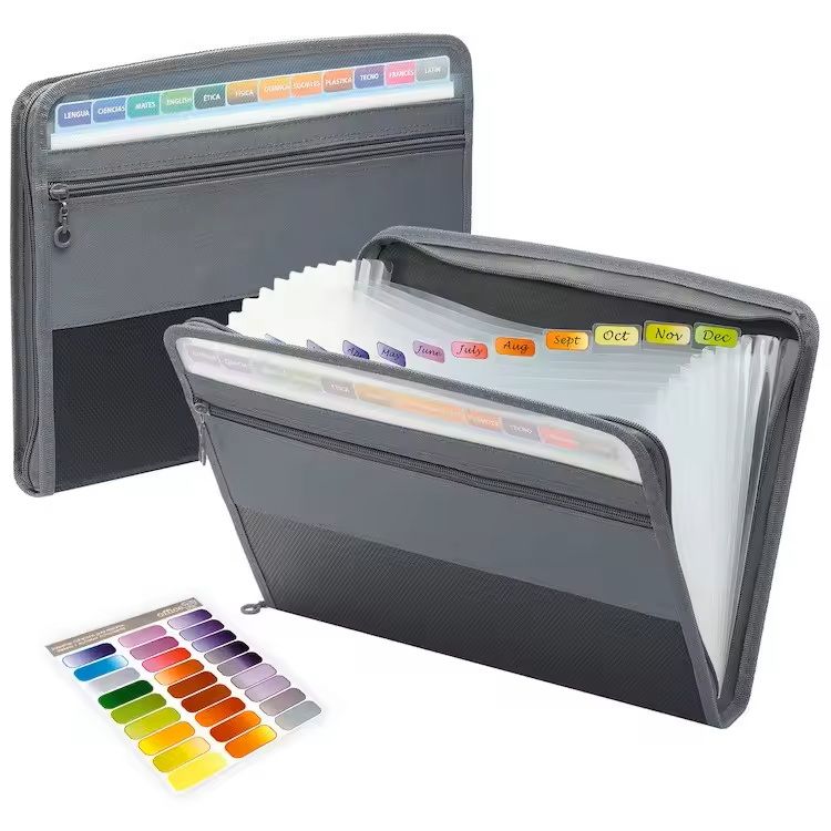 Zippered Accordion File Organizer With Pencil Pouch grey