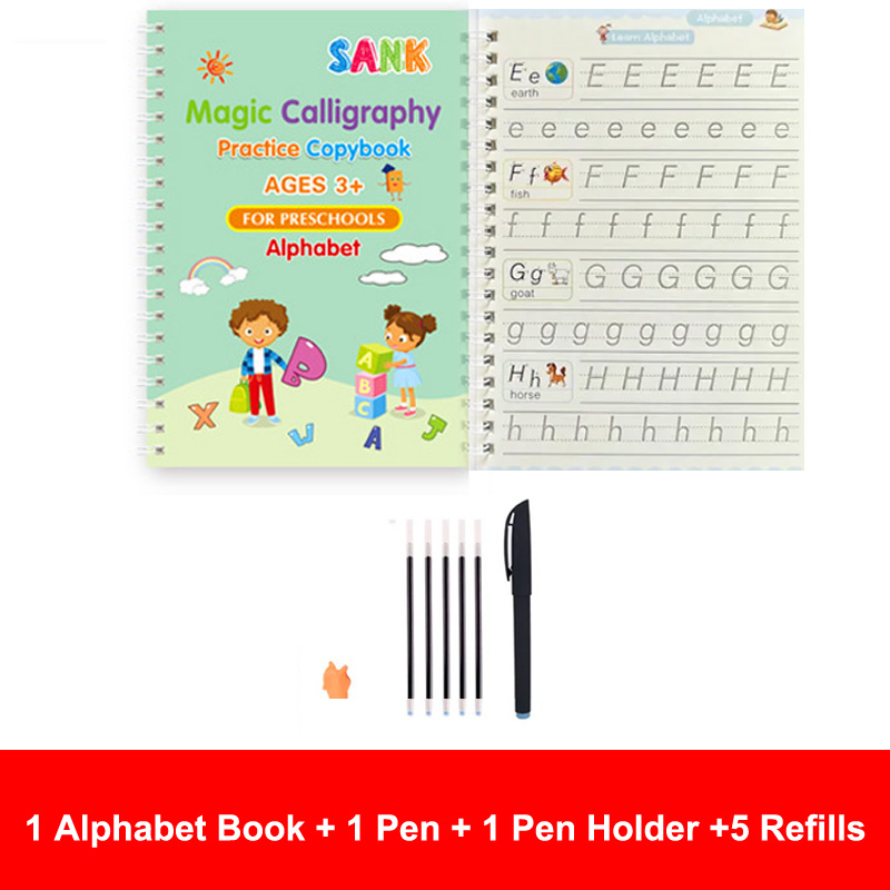 Sank Magic Practice Copybook Pen Reusable Writing Book For Kids | Preschool Calligraphy English Version With Free Wiping alphabet Sets