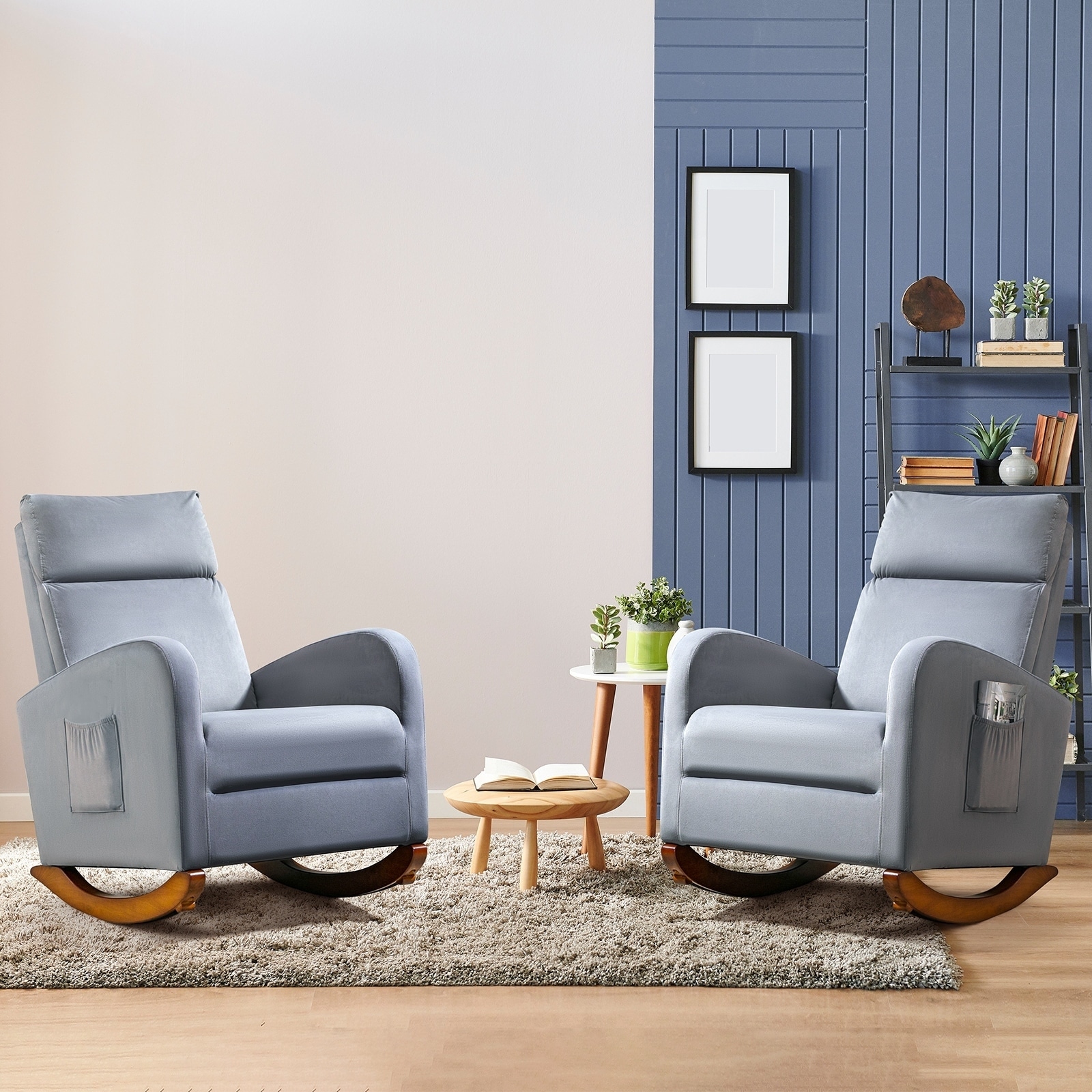 Mid Century Velvet Nursery Rocking Chairs Set of 2, Upholstered High Back Glider Armchairs for Living Room