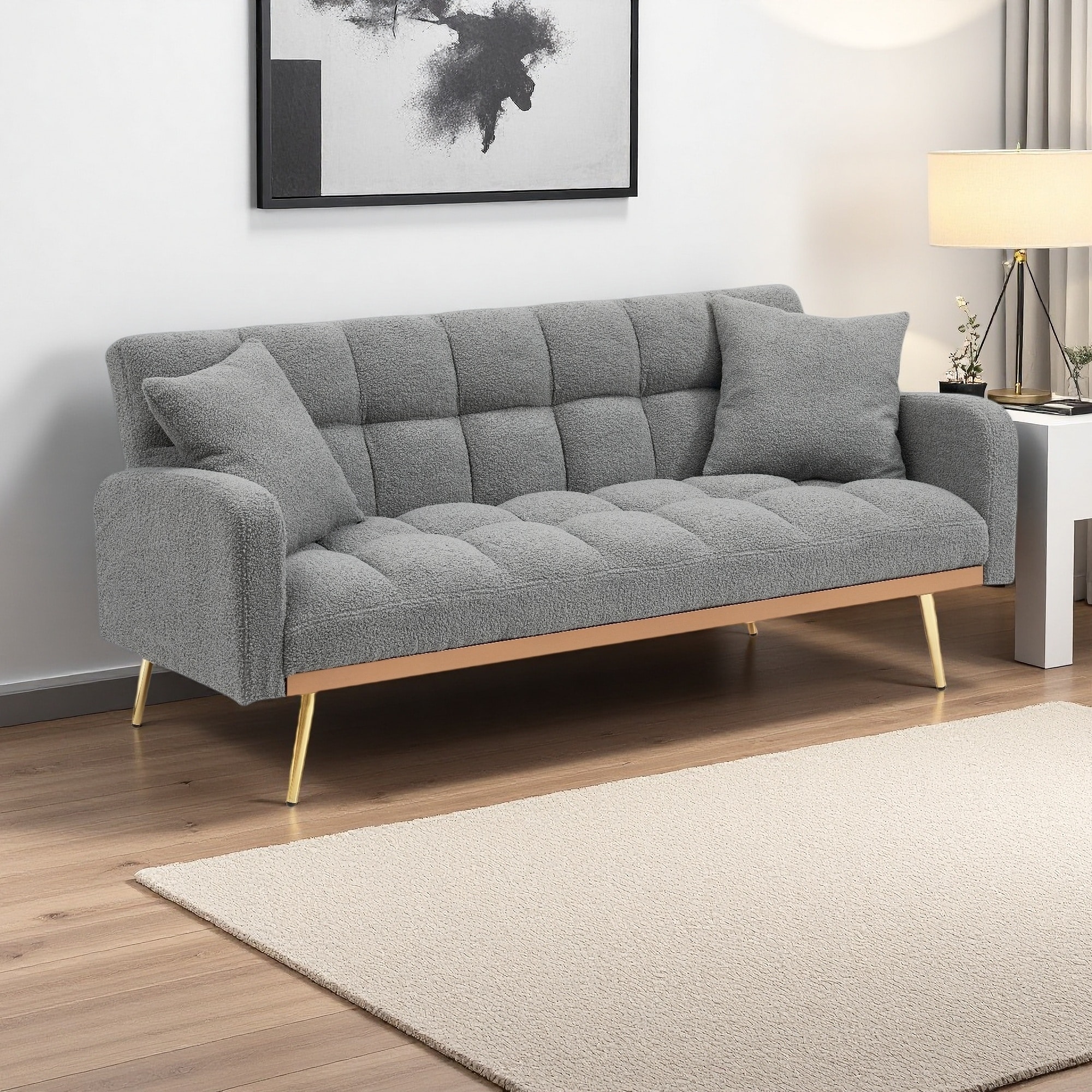 69" 2-in-1 Sofa Bed with Adjustable Backrest ,Solid Wood Frame and Easy Assembly