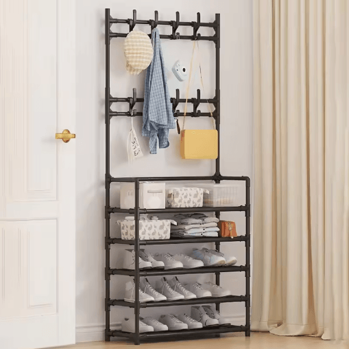 5 Layer Multifunctional Shoe & Coat Rack With Integrated Storage (2 Piece Set) white Color