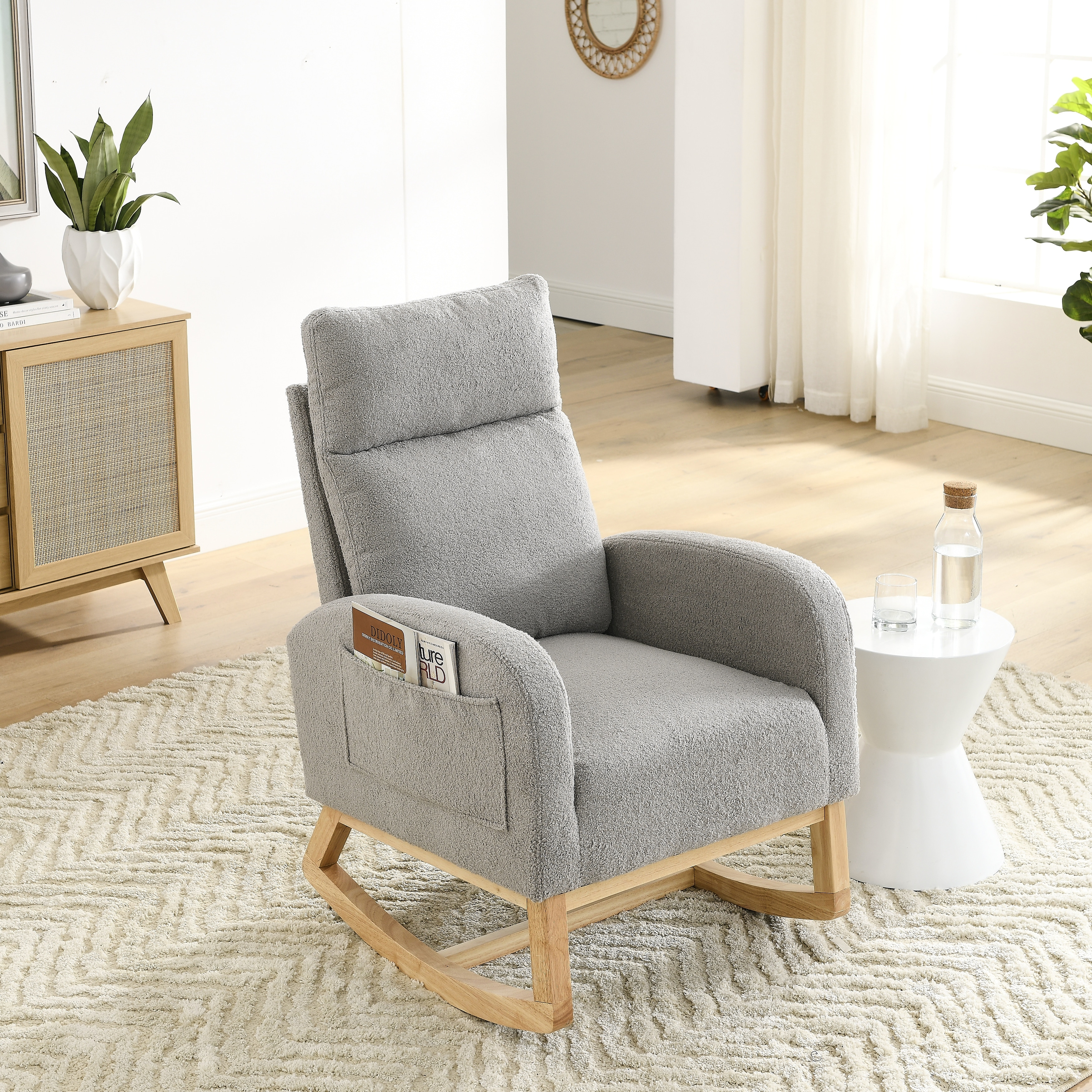 Modern Accent Glider Chair with Two Side Pocket,High Backrest Living Room Lounge Arm Rocking Chair, for Living Room Bedroom