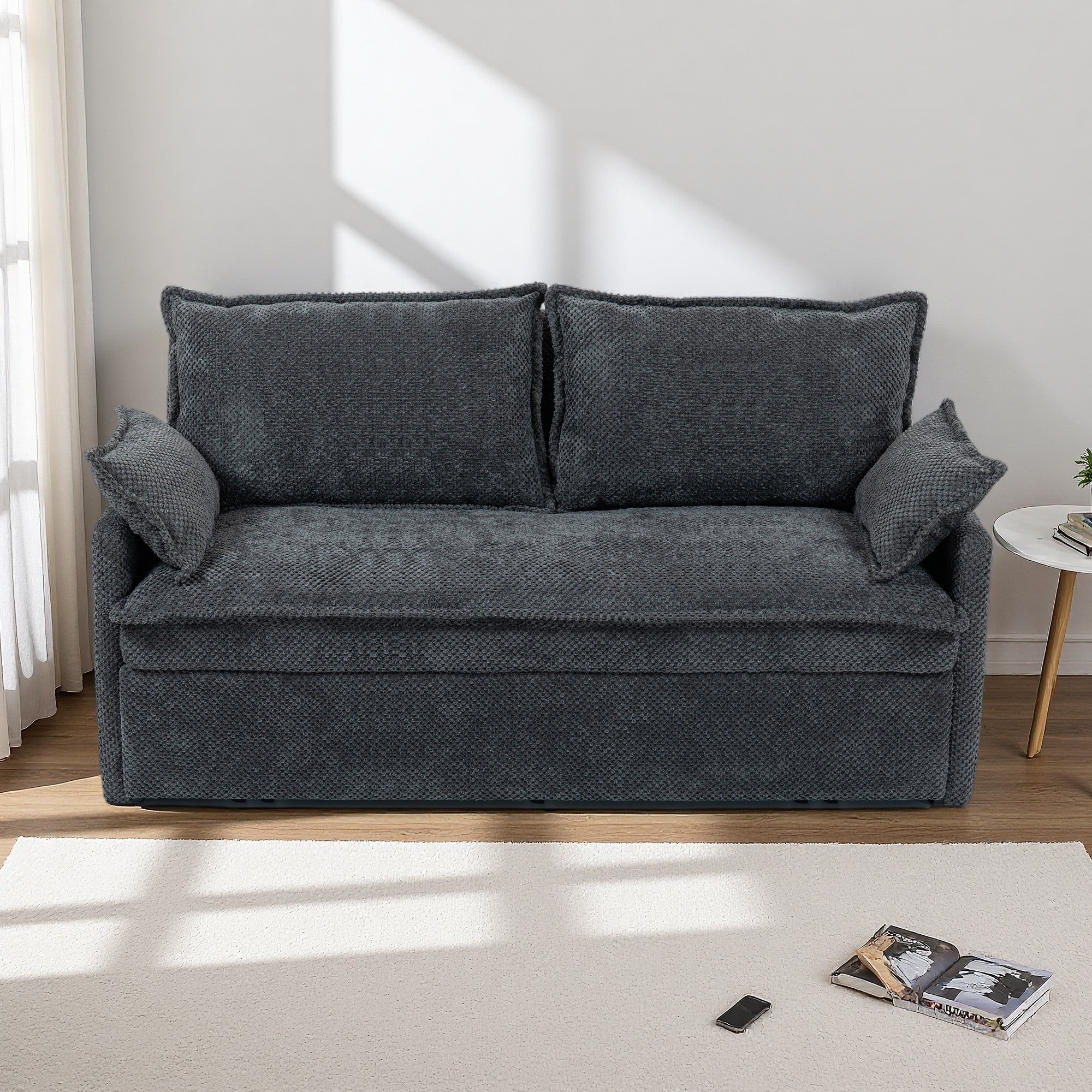 59.5" Chenille 2-in-1 Pull Out Sofa Bed with Side Storage and USB/C-Type Charging Ports, Sleeper Sofa Couch for Living Room