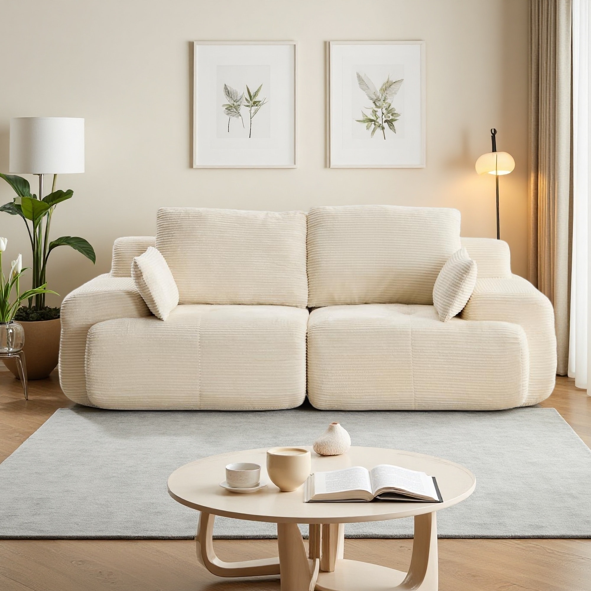 84.25" 2-Seater Memory Foam Corduroy Sofa, Customizable Modular Sectional Couch, Extra Deep Loveseat, Pet-Friendly, No Assembly