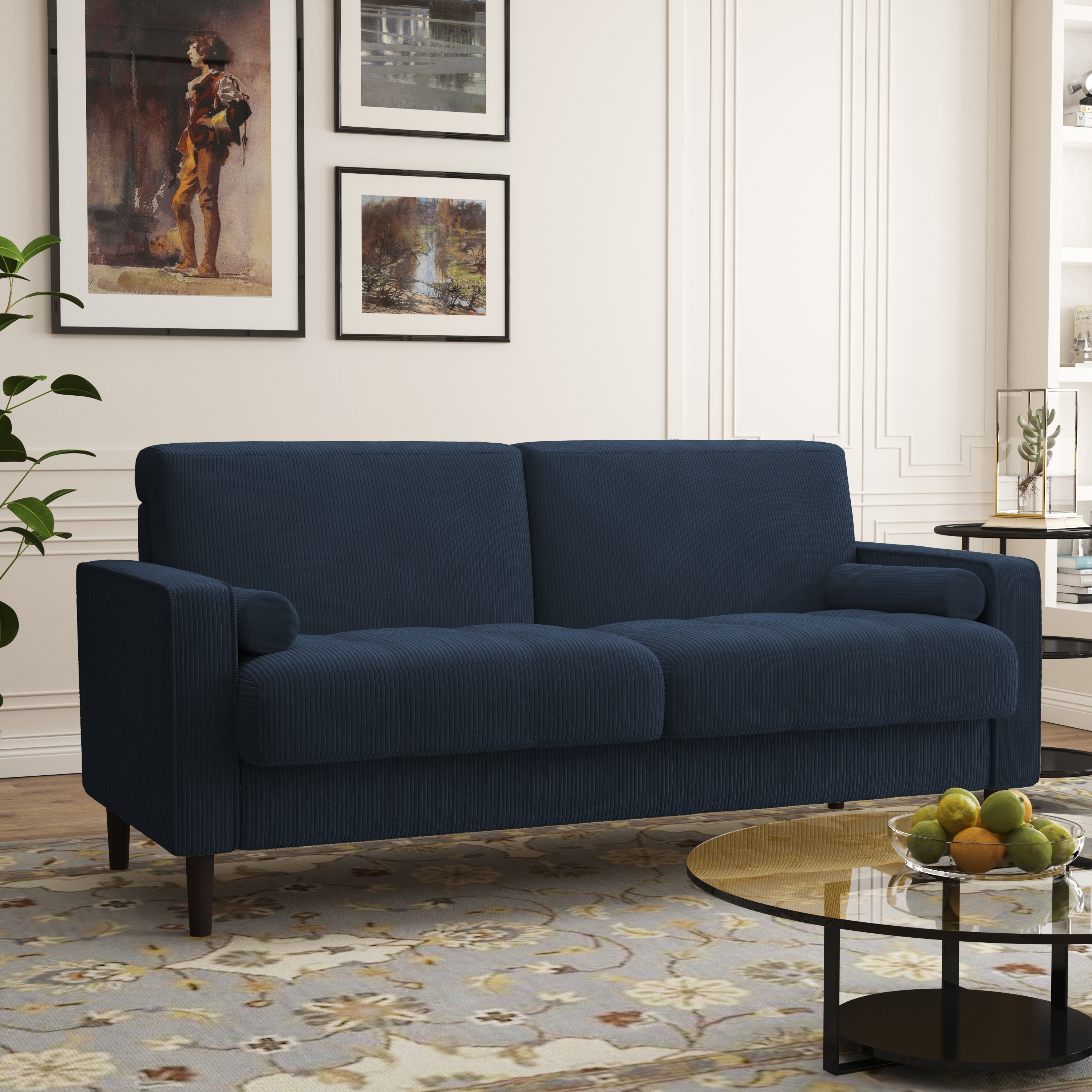 Corduroy Solid Wood Legs Modern Loveseat Sofa with Bolster Pillows