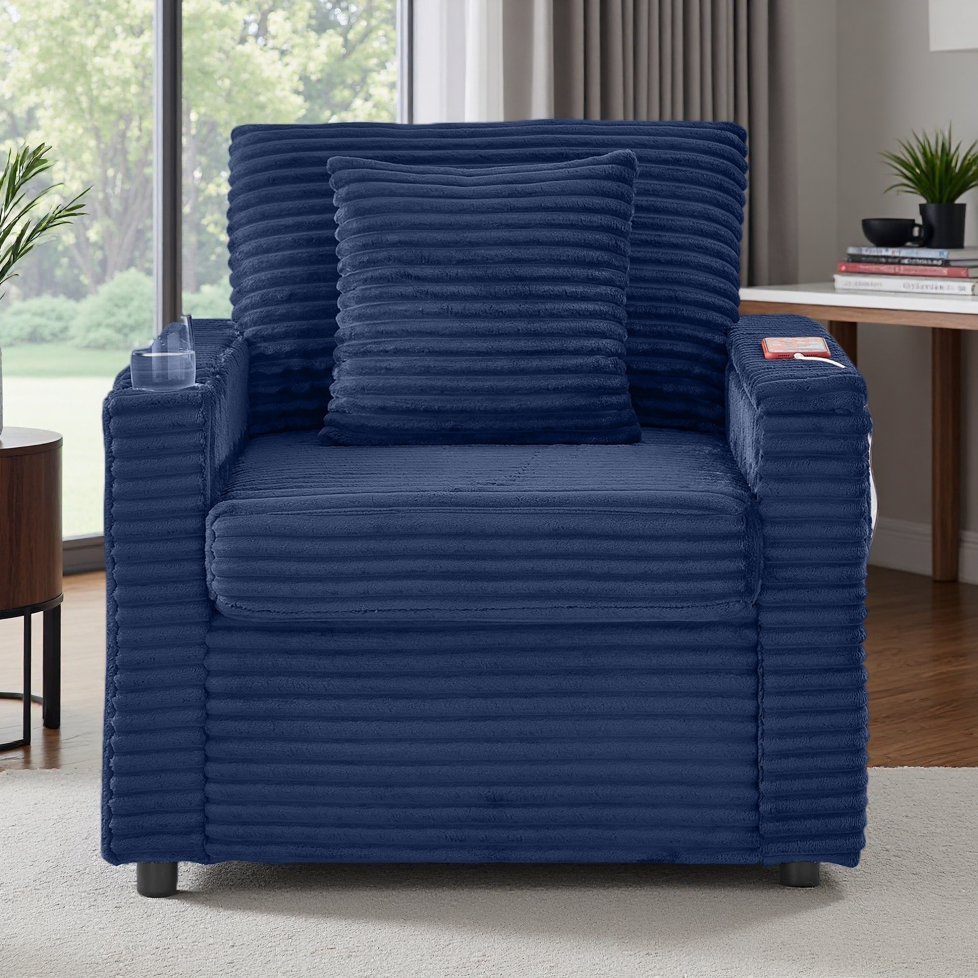56.5" Oversized Corduroy Lazy Sofa, Storage Space Single Chair with Ottoman, Chaise Lounge and Table Board, USB Port, Cup Holder