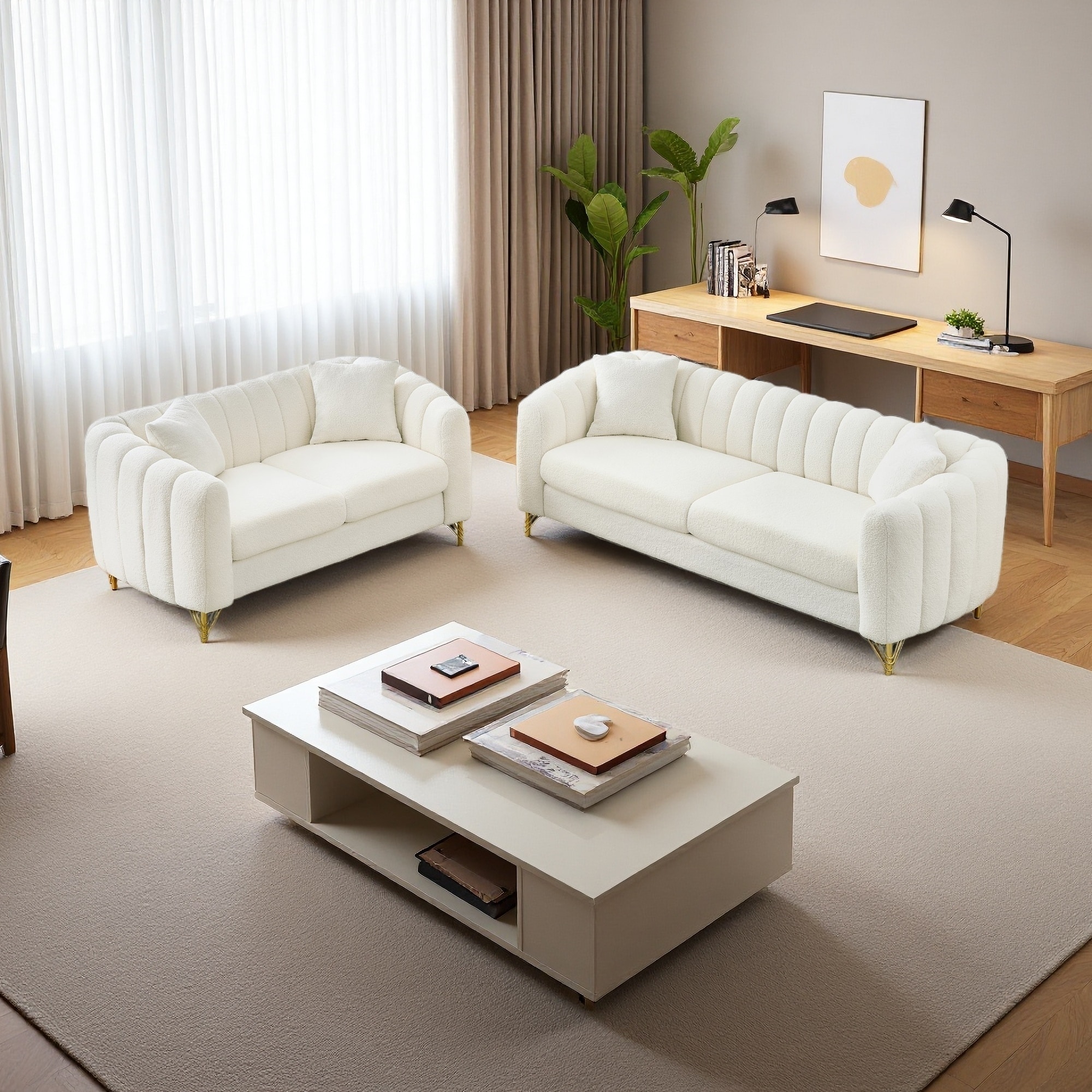 Chenille Oversized Sofa Set with Tufted Back and Gold Metal Legs (5-Seater)