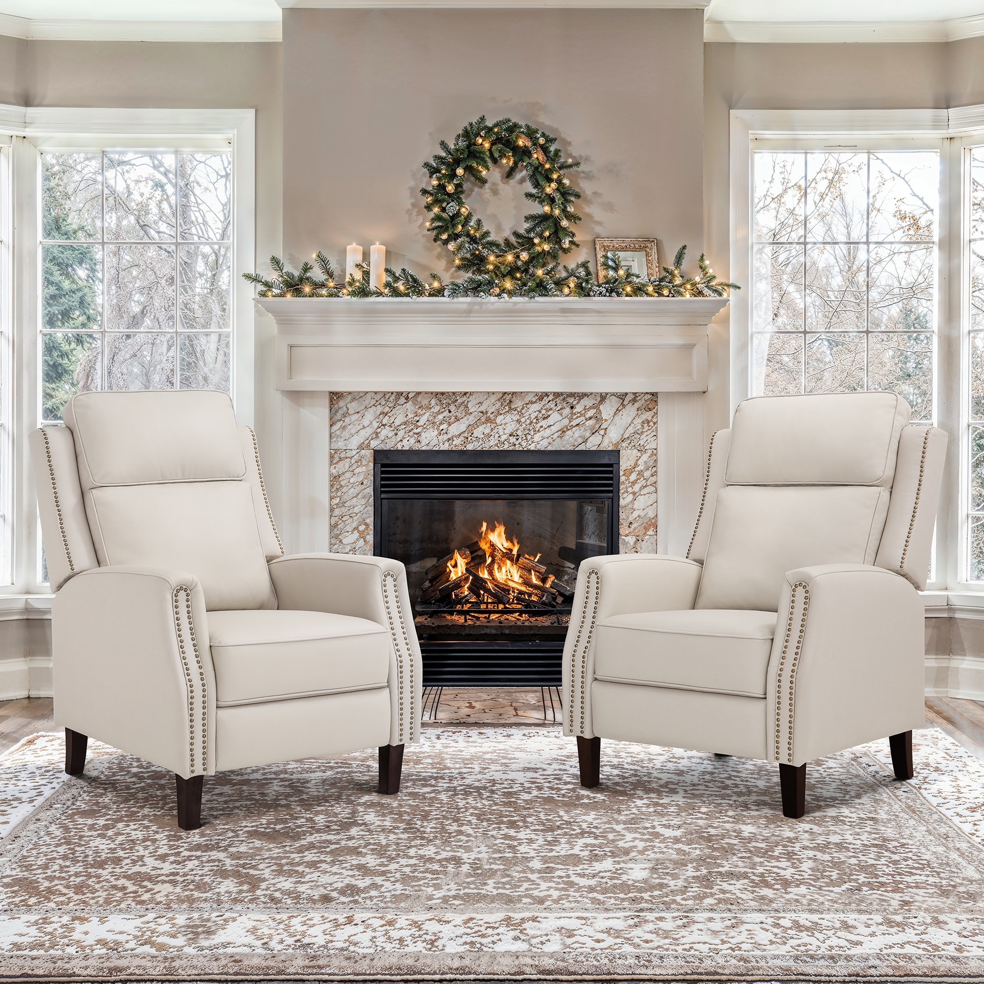 2 Set Genuine Leather Recliner Modern Push Back Recliner Chair Wingback 3 Adjustable Chair for Living Room