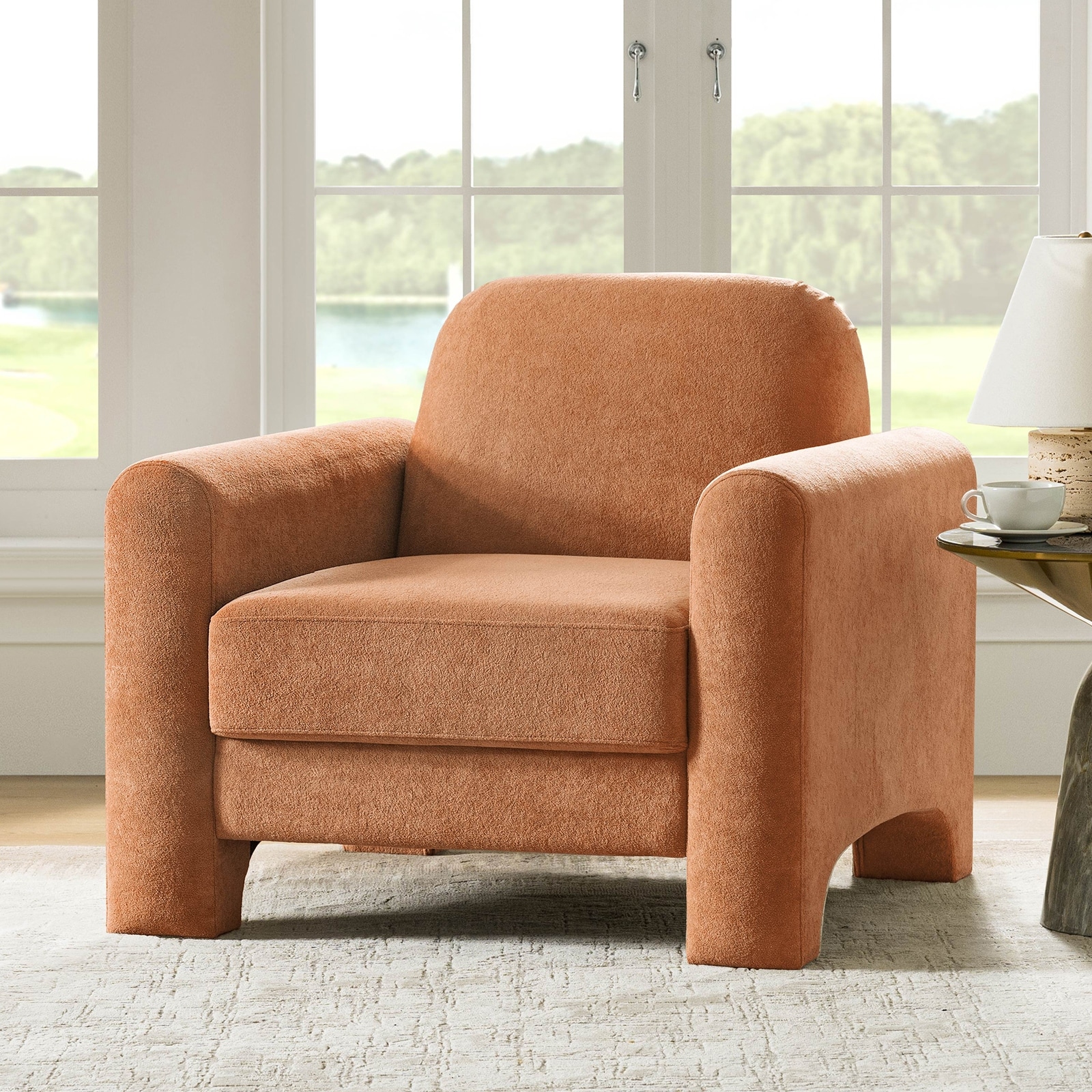 Modern Burnt Orange Accent Chair with Barrel Design and Tufting