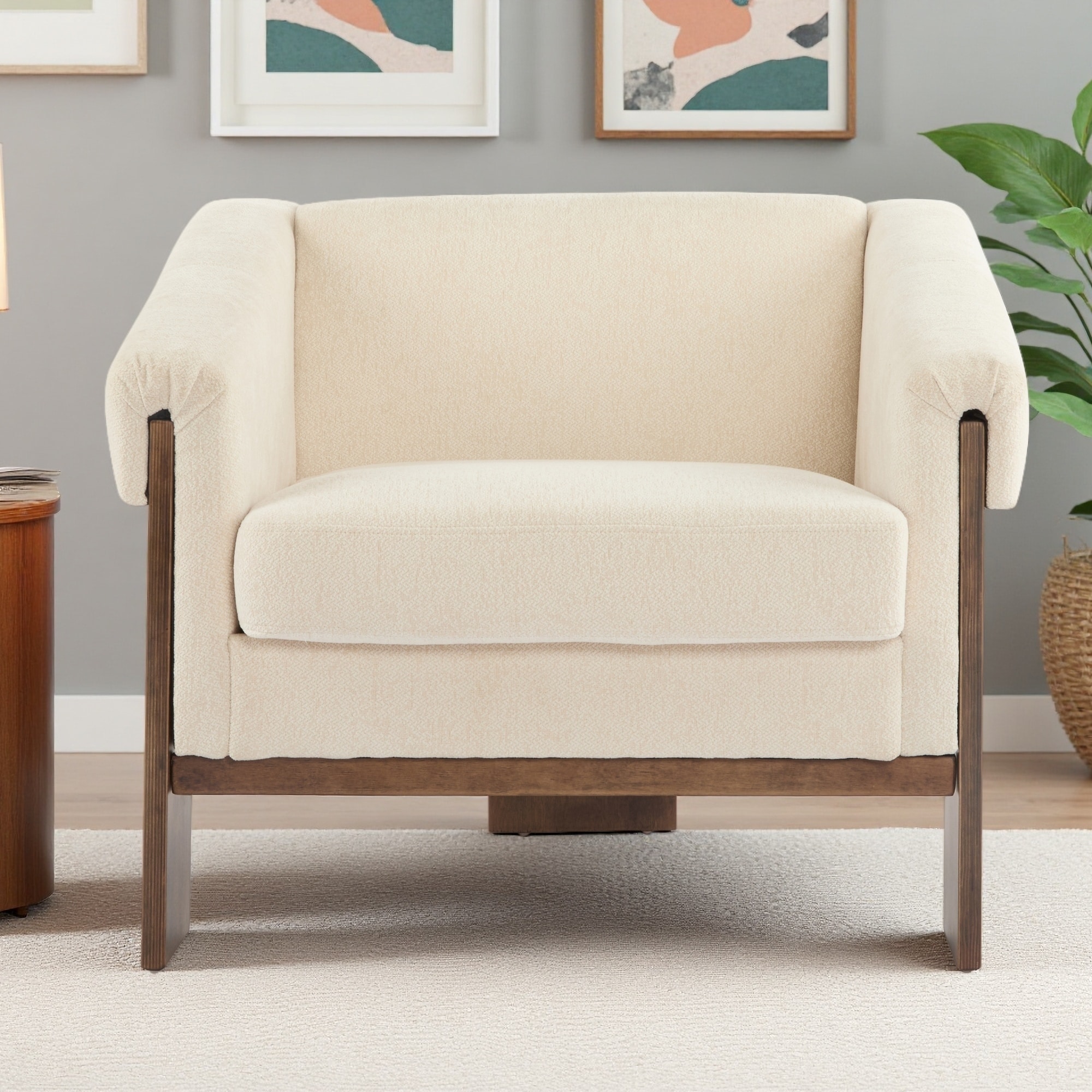 34" Upholstered Mid-Century Accent Chair with Deep Cushions, Wide Arms & Solid Wood Frame