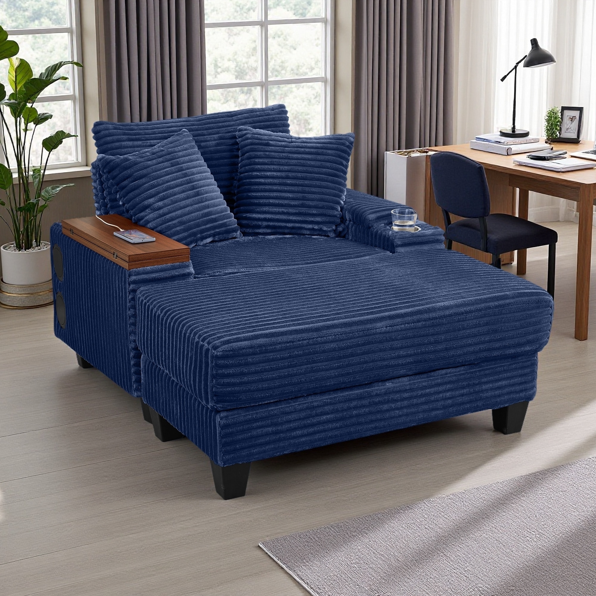 54" Corduroy Storage Armrest Sofa, Single Versatile Seat with Ottoman, Bluetooth Speaker, USB Ports, 180掳 Rotating Table Board