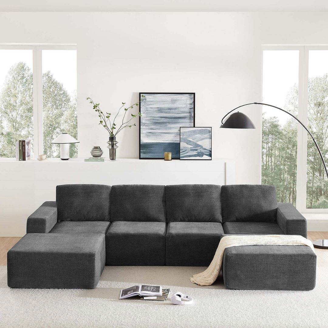 U-Shape Sectional Sofa, Double Extra Wide Chaise Lounge Couch, Luxury Chenille
