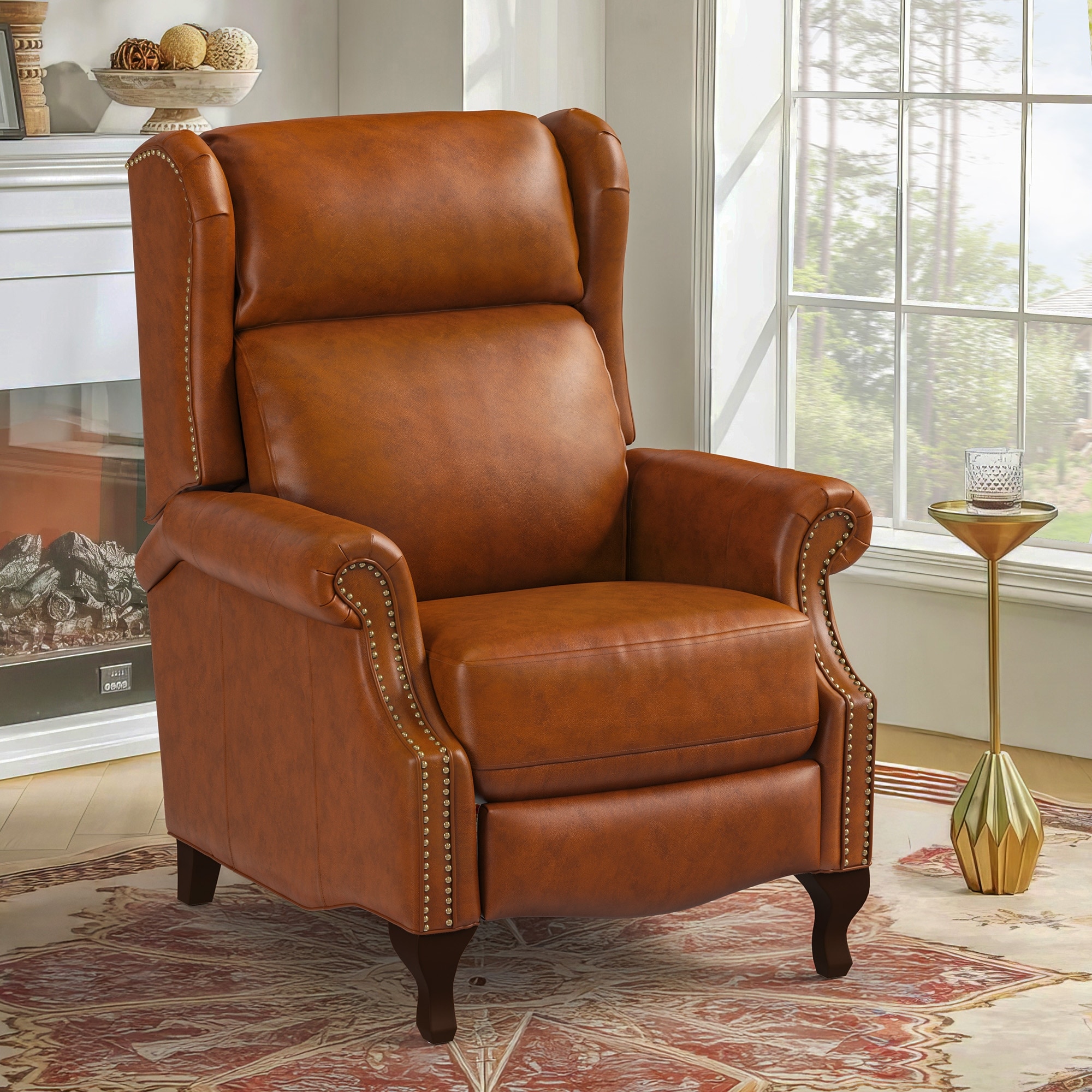 Push Back Genuine Leather Recliner Chair,Modern Recliner Sofa With Adjustable Backrest And Single Chair For Living Room
